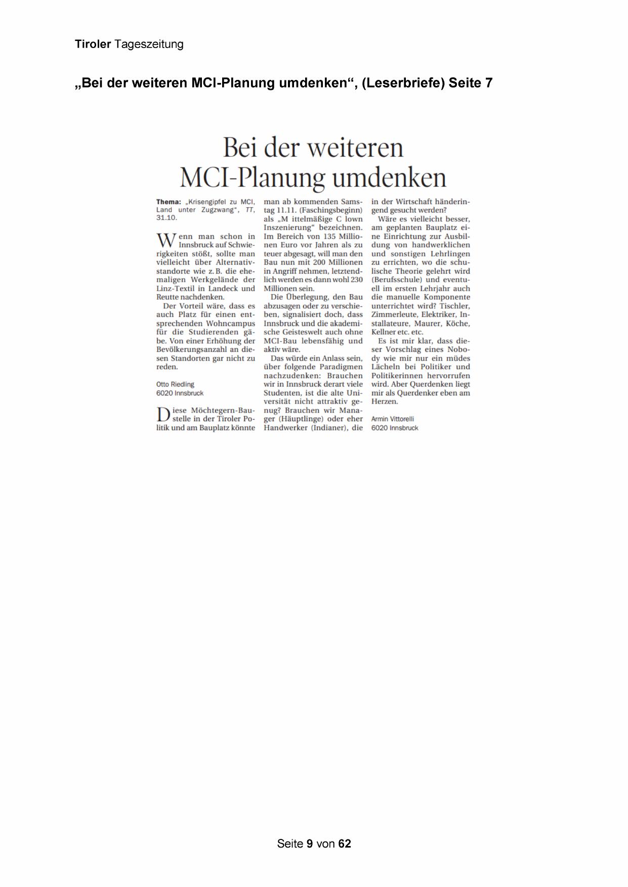 „Bei der weiteren MCI-Planung umdenken“, (Leserbriefe) Seite 7