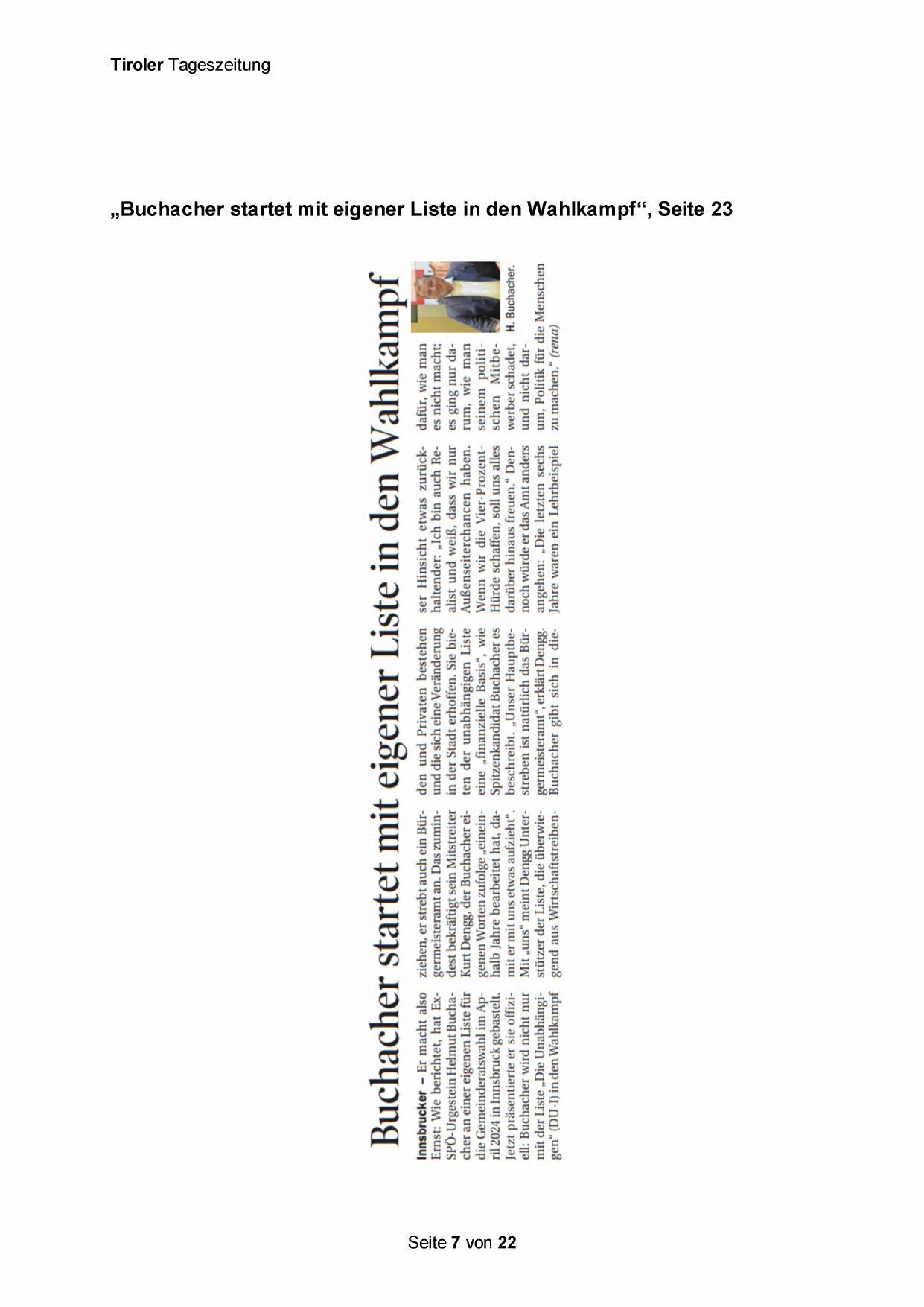 „Buchacher startet mit eigener Liste in den Wahlkampf“, Seite 23
