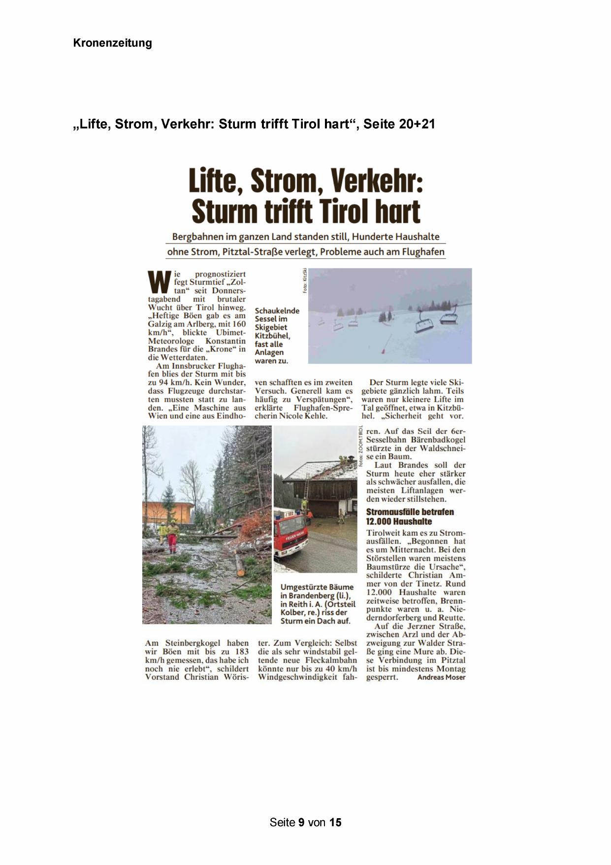 „Lifte, Strom, Verkehr: Sturm trifft Tirol hart‘“, Seite 20+21