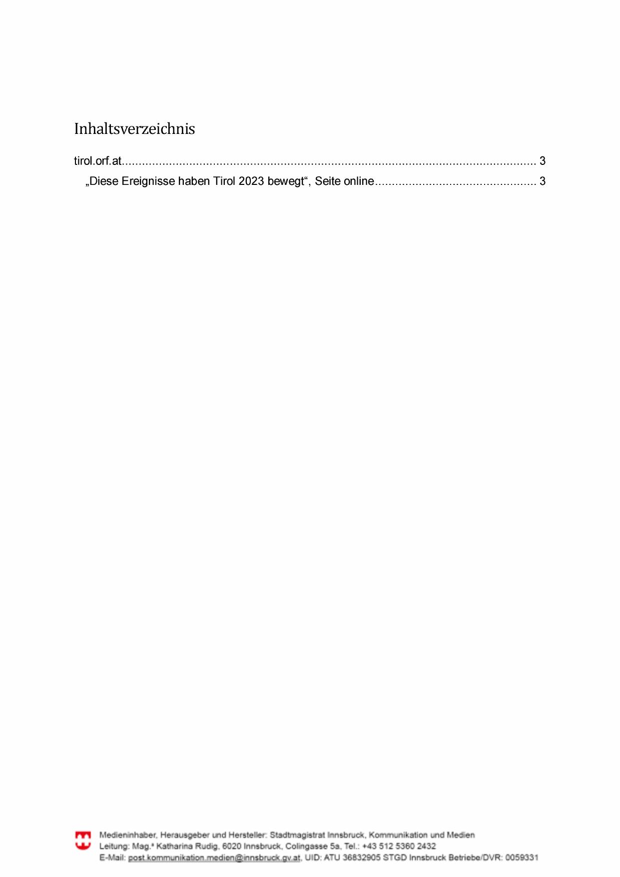„Diese Ereignisse haben Tirol 2023 bewegt“, Seite OnNliNE.....e