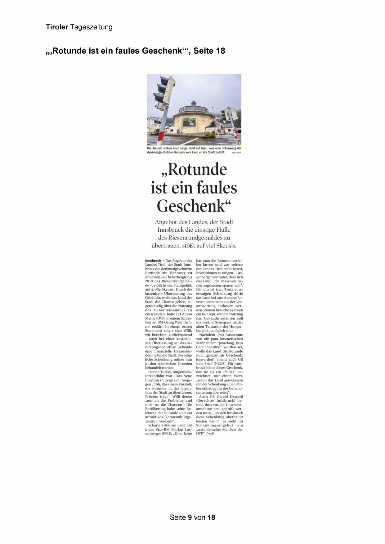 (Gerechtes Innsbruck) betont, dass vor der Geschenkannahme erst geprüft werden muss, „ob sich Innsbruck