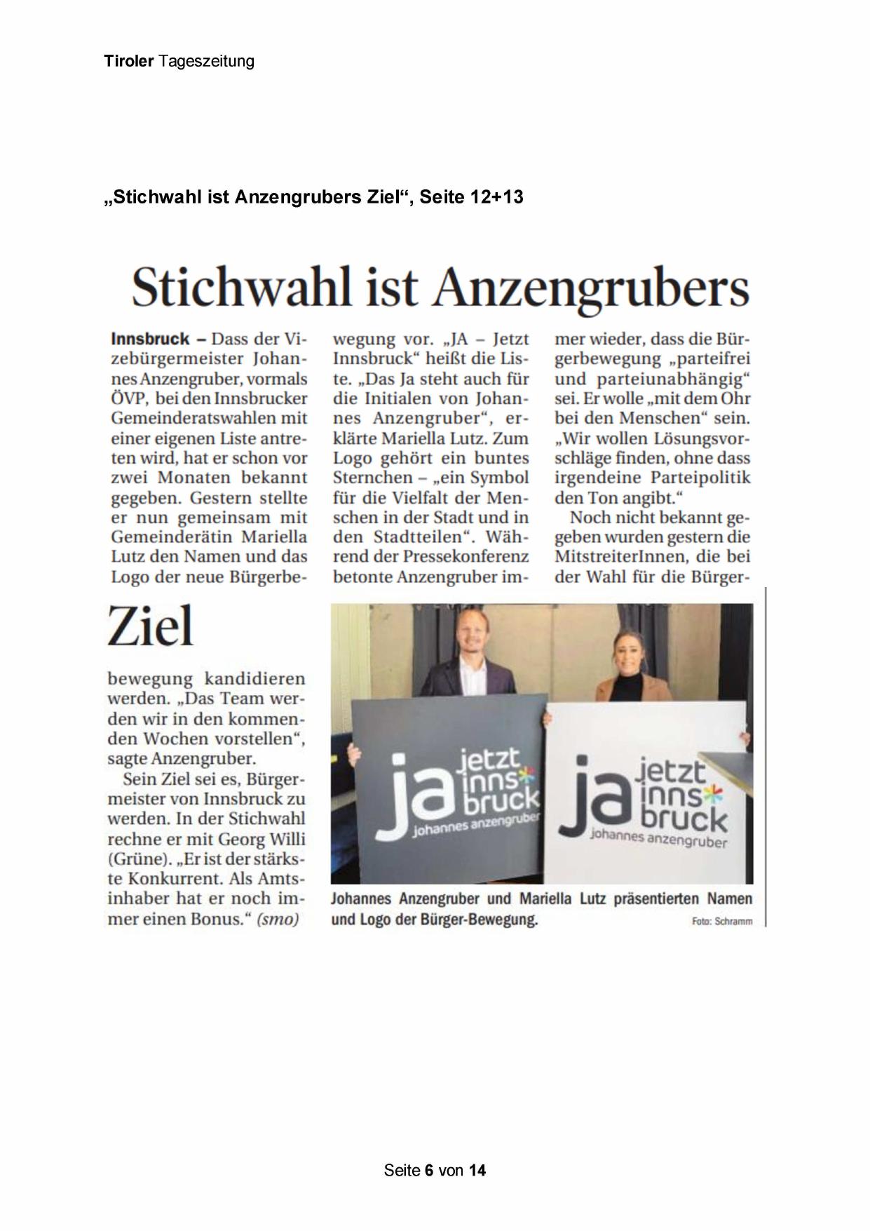 „Stichwahl ist Anzengrubers Ziel“, Seite 12+13