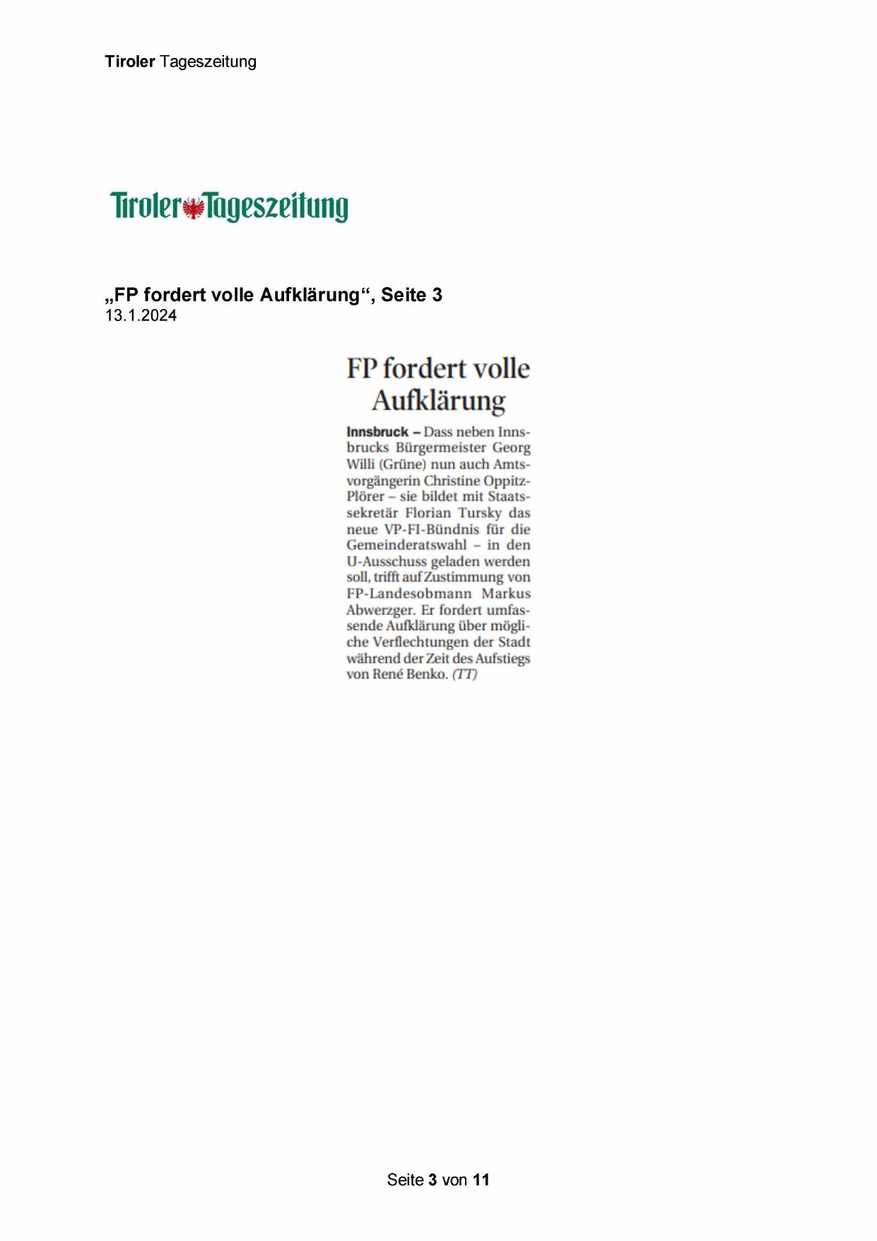 „FP fordert volle Aufklärung“, Seite 3