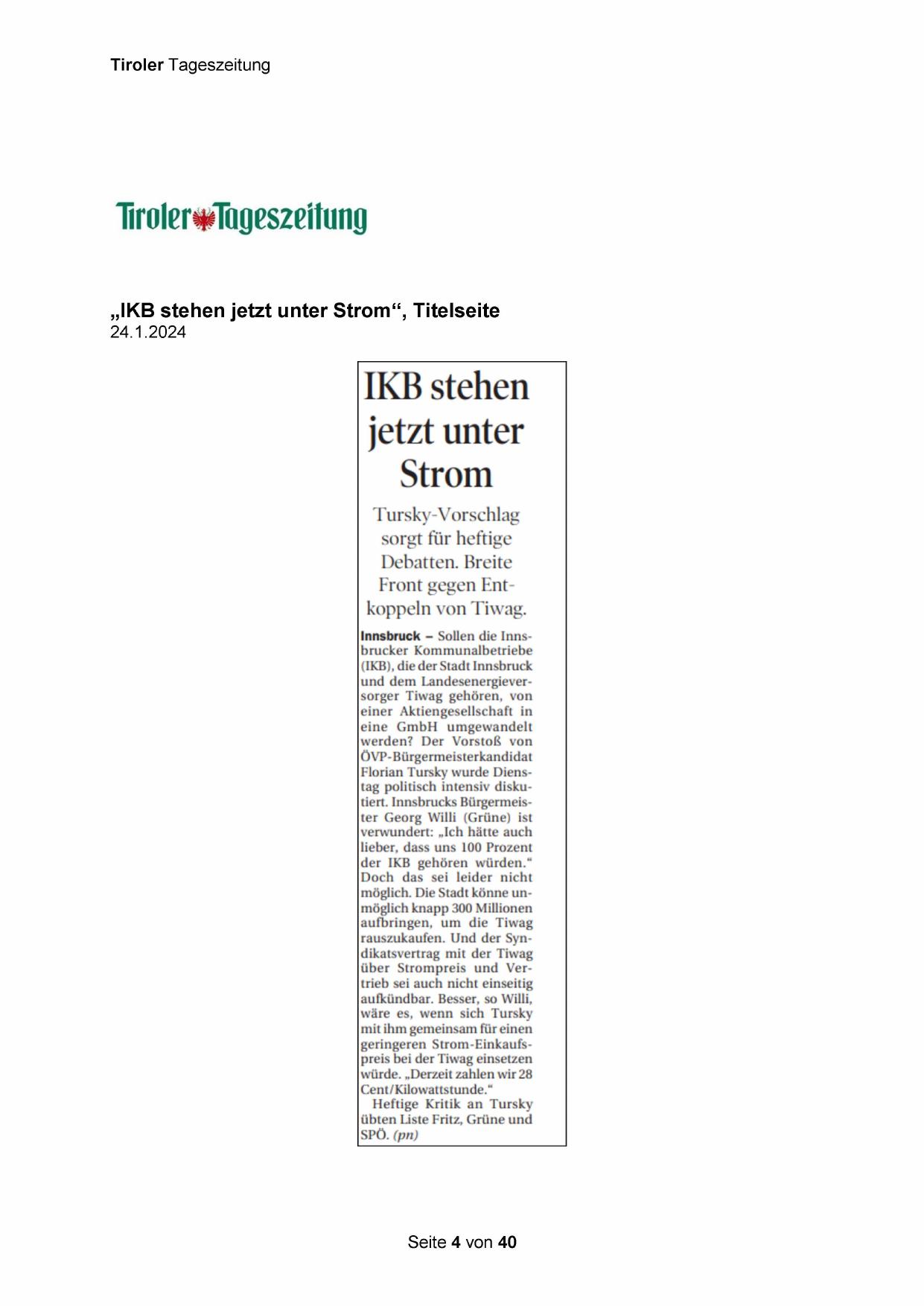 Innsbruck —- Sollen die Innsbrucker Kommunalbetriebe