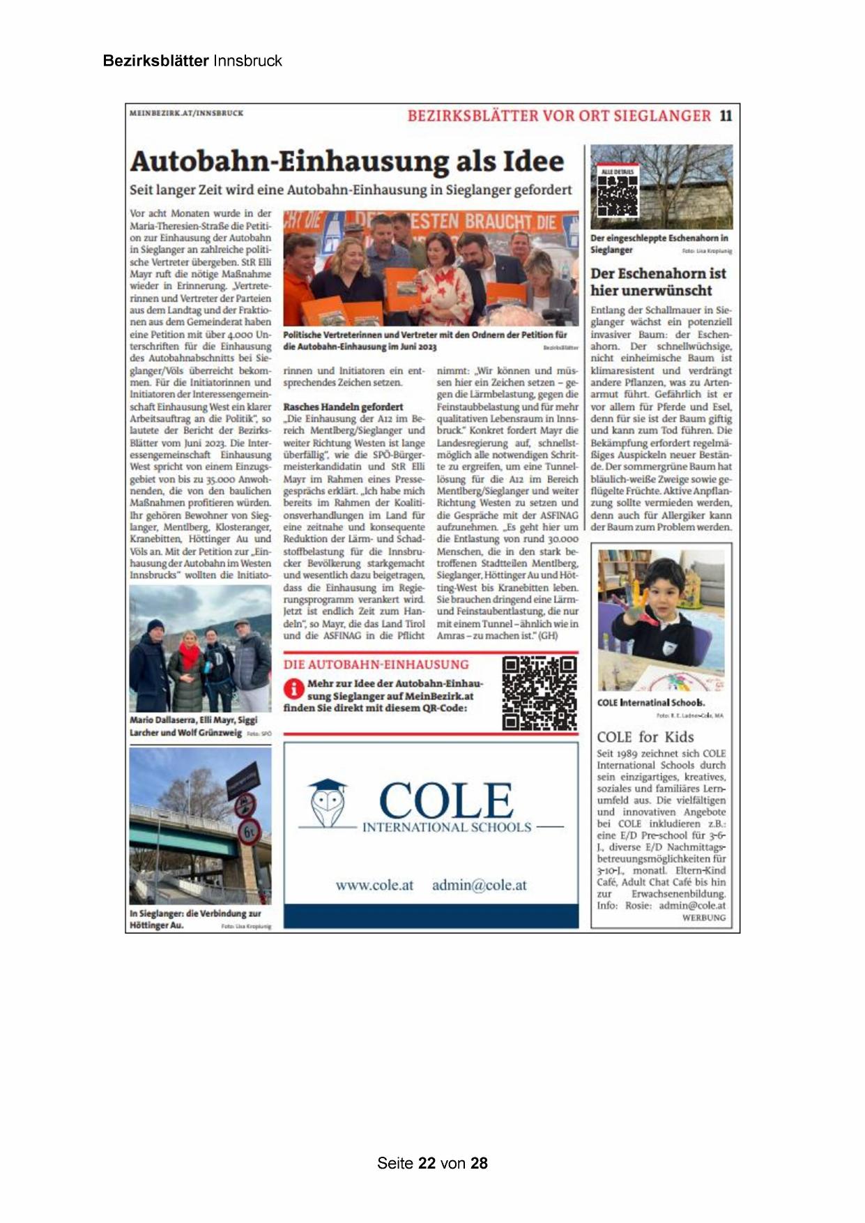 Völs an. Mit der Petition zur „Einhausung der Autobahn im Westen