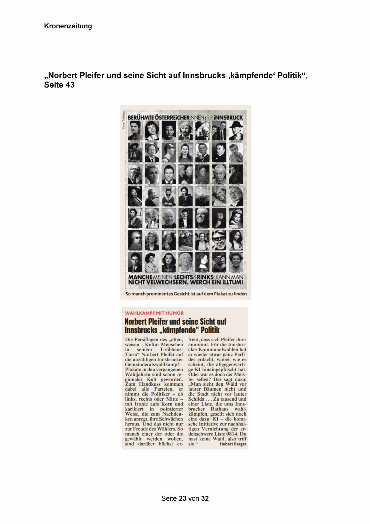„Norbert Pleifer und seine Sicht auf Innsbrucks ‚kämpfende‘ Politik“,