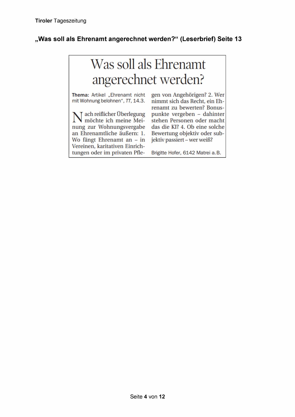 „Was soll als Ehrenamt angerechnet werden?“ (Leserbrief) Seite 13