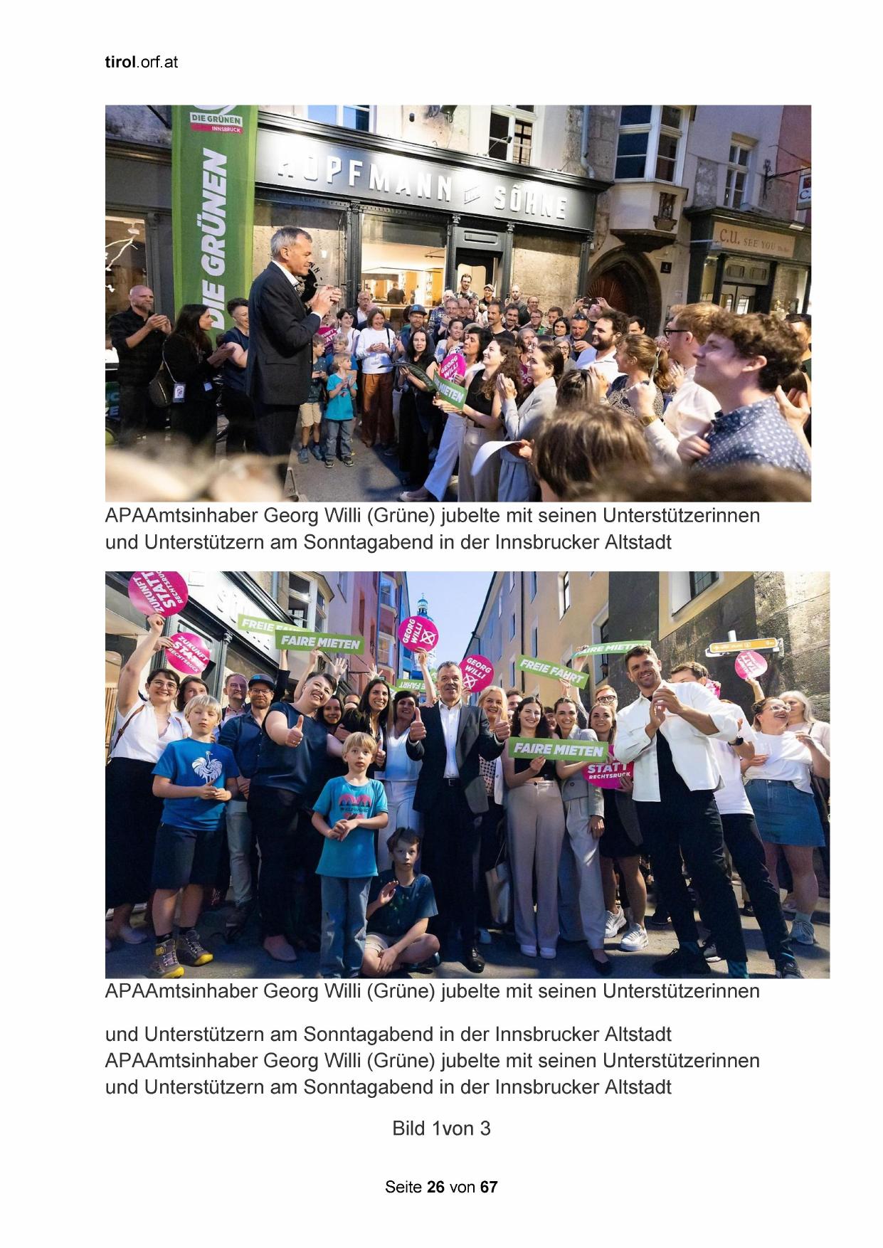 APAAmtsinhaber Georg Willi (Grüne) jubelte mit seinen Unterstützerinnen