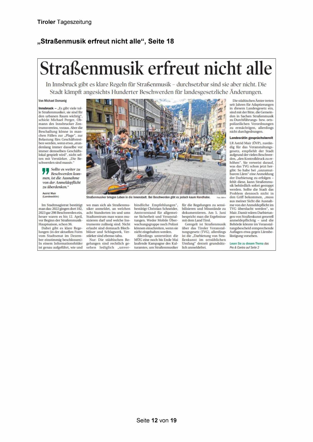 „Straßenmusik erfreut nicht alle‘“, Seite 18