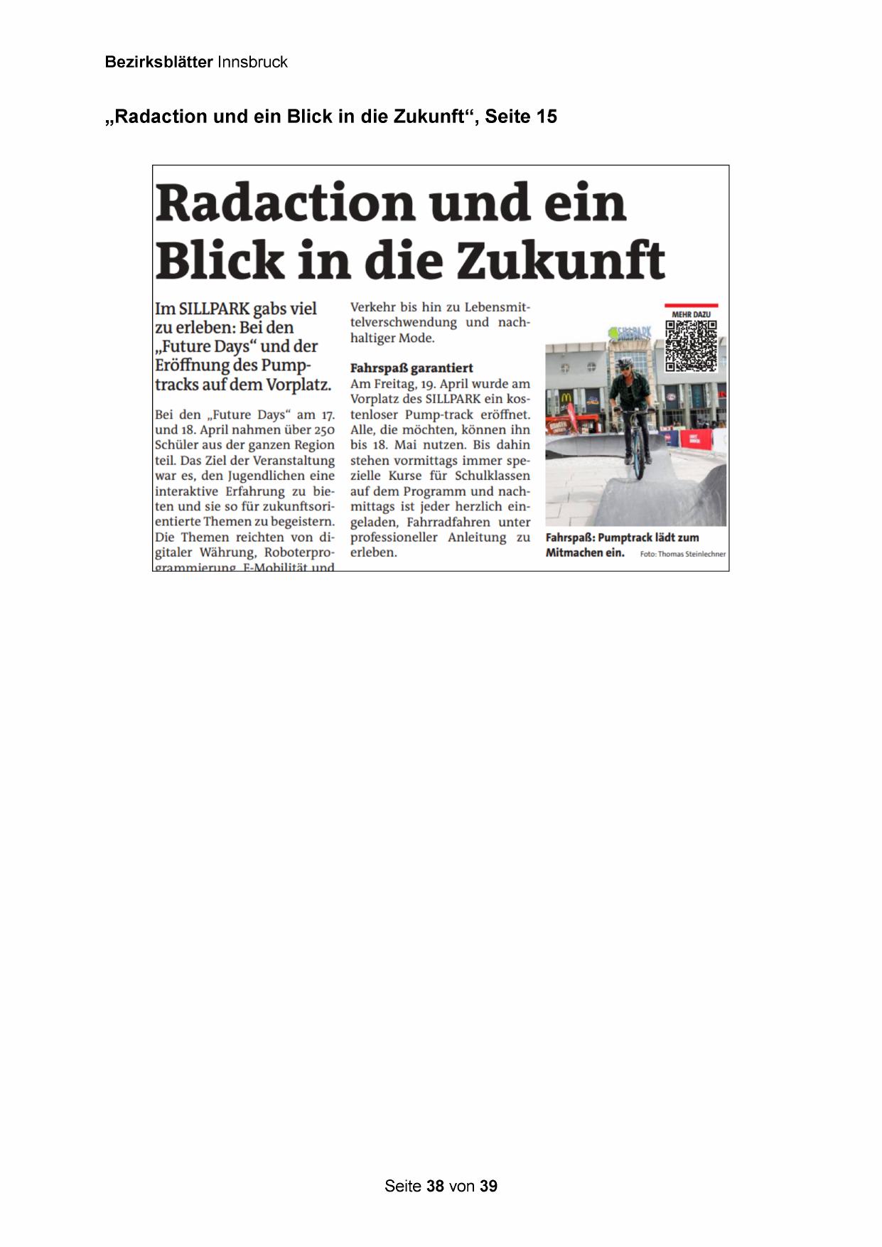 Vorplatz des SILLPARK ein kostenloser Pump-track eröffnet.