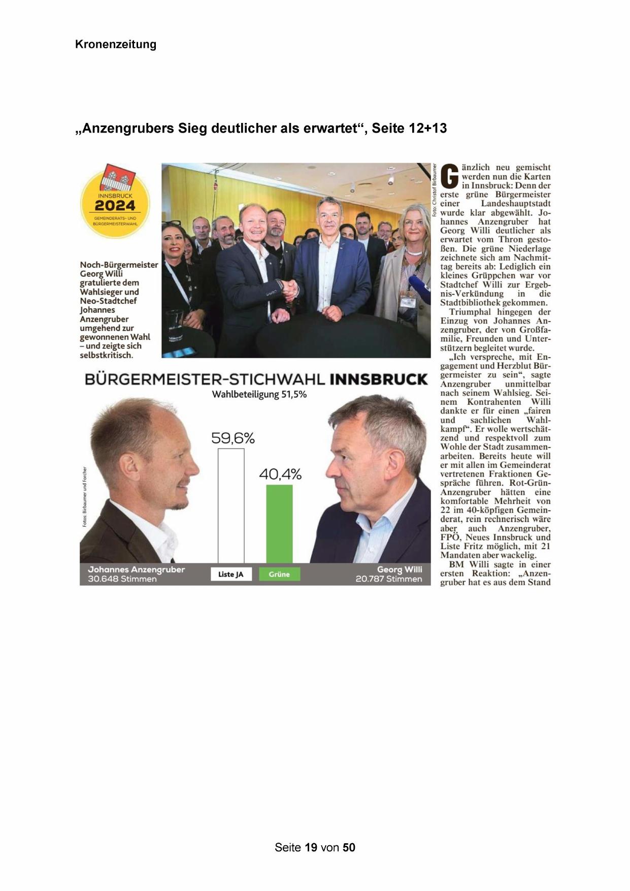„Anzengrubers Sieg deutlicher als erwartet‘“, Seite 12+13
