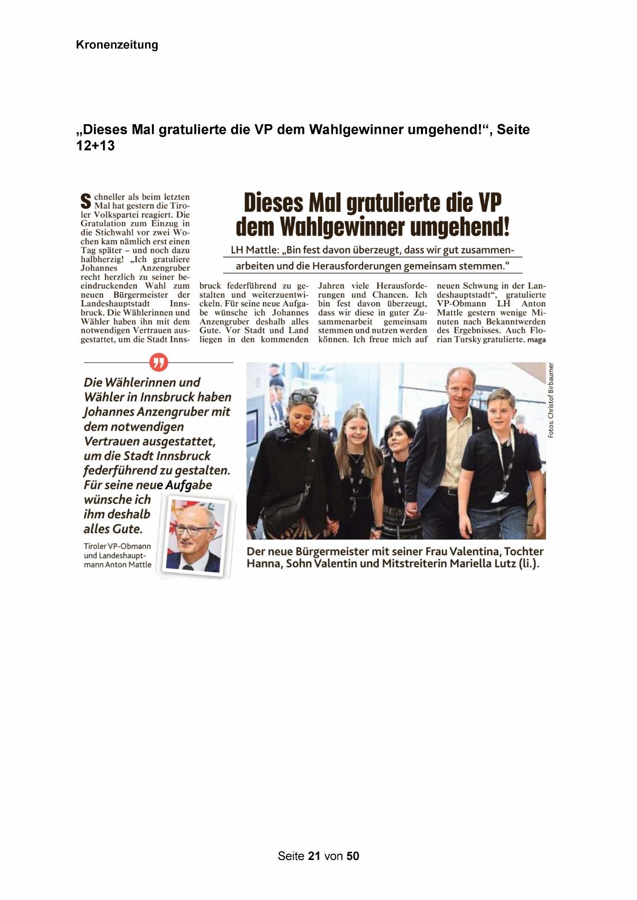 Mal hat gestern die Tiroler Volkspartei reagiert. Die