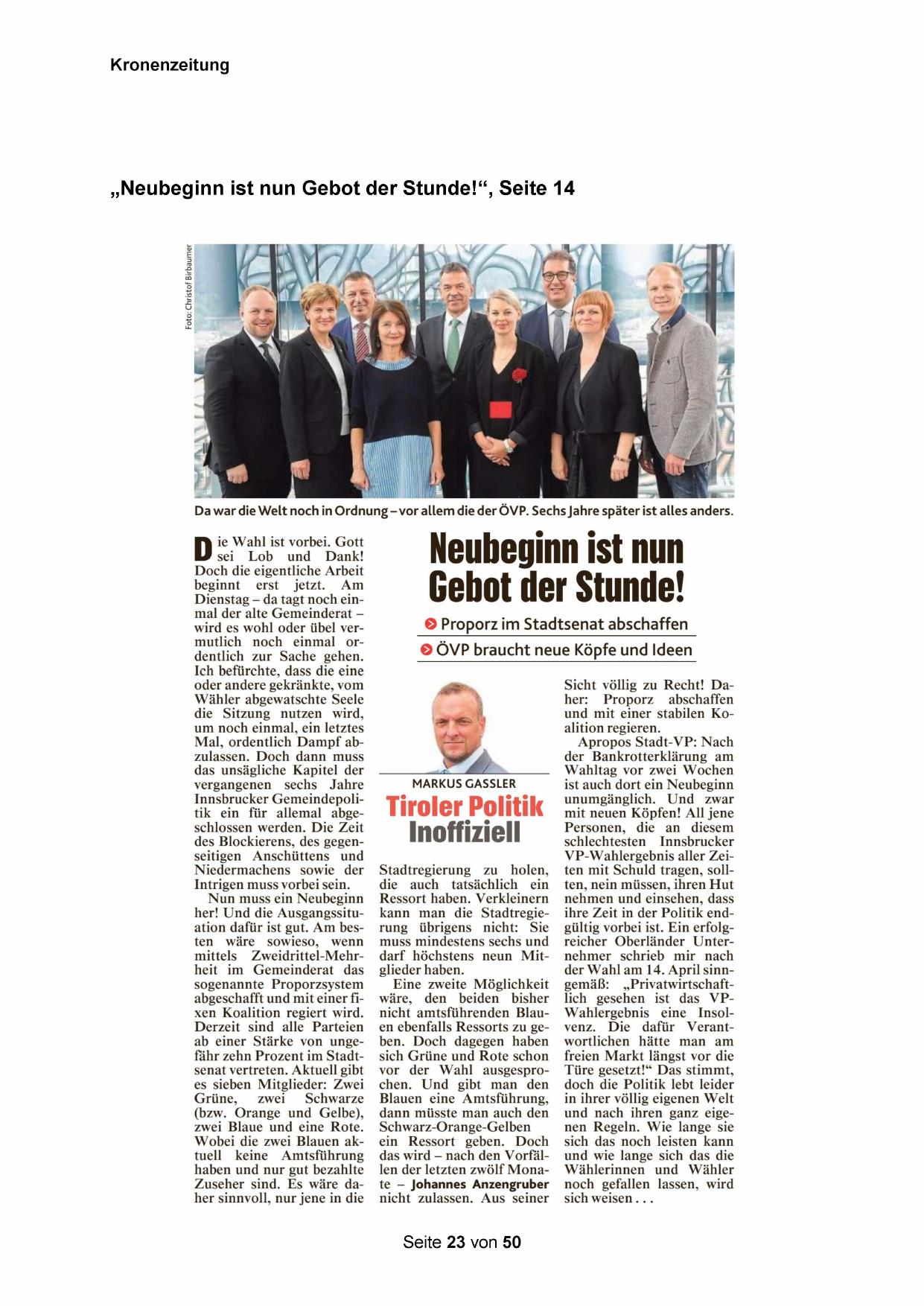Innsbrucker Gemeindepolitik ein für allemal abgeschlossen werden. Die Zeit