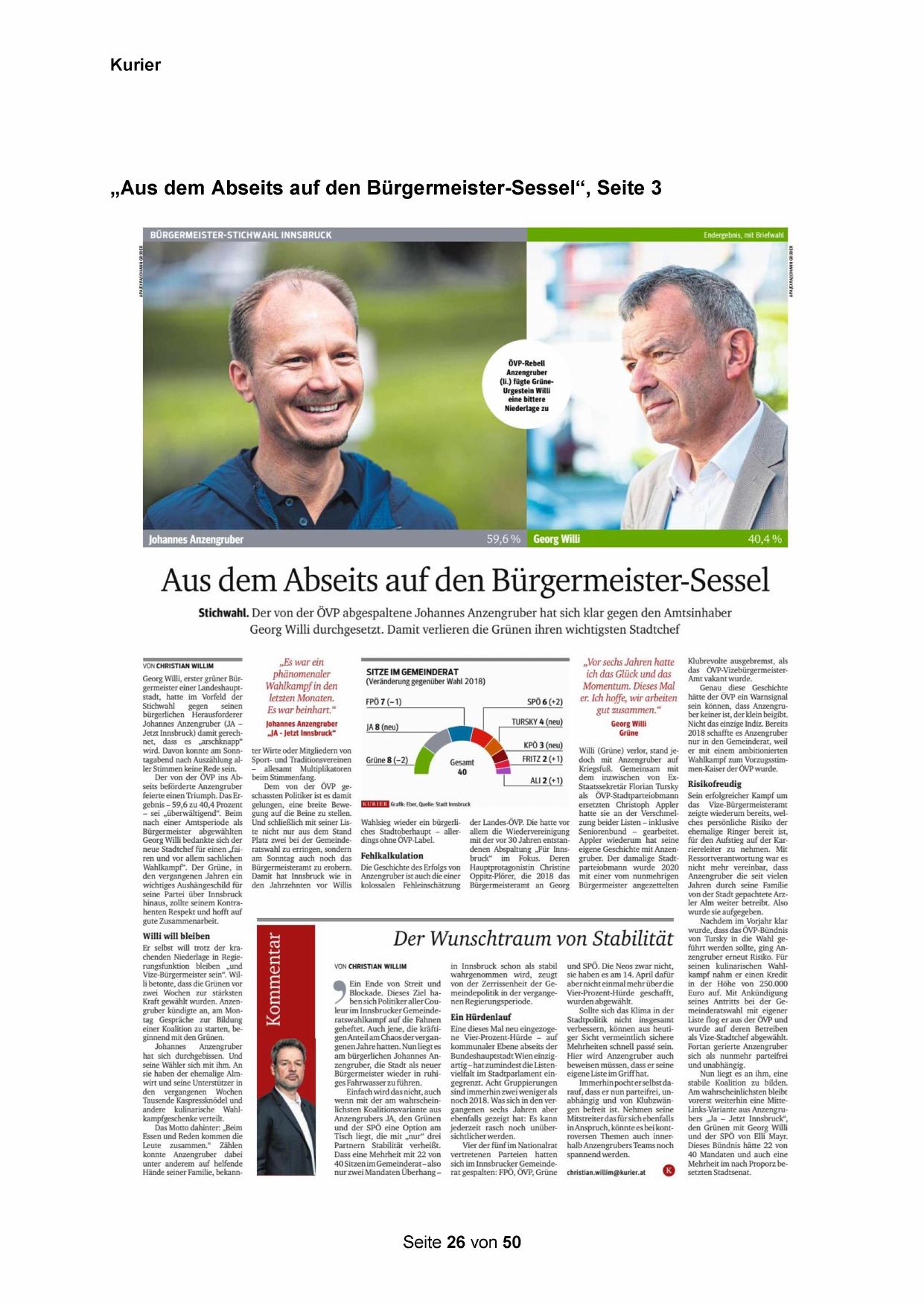 Georg Willi durchgesetzt. Damit verlieren die Grünen ihren wichtigsten Stadtchef
