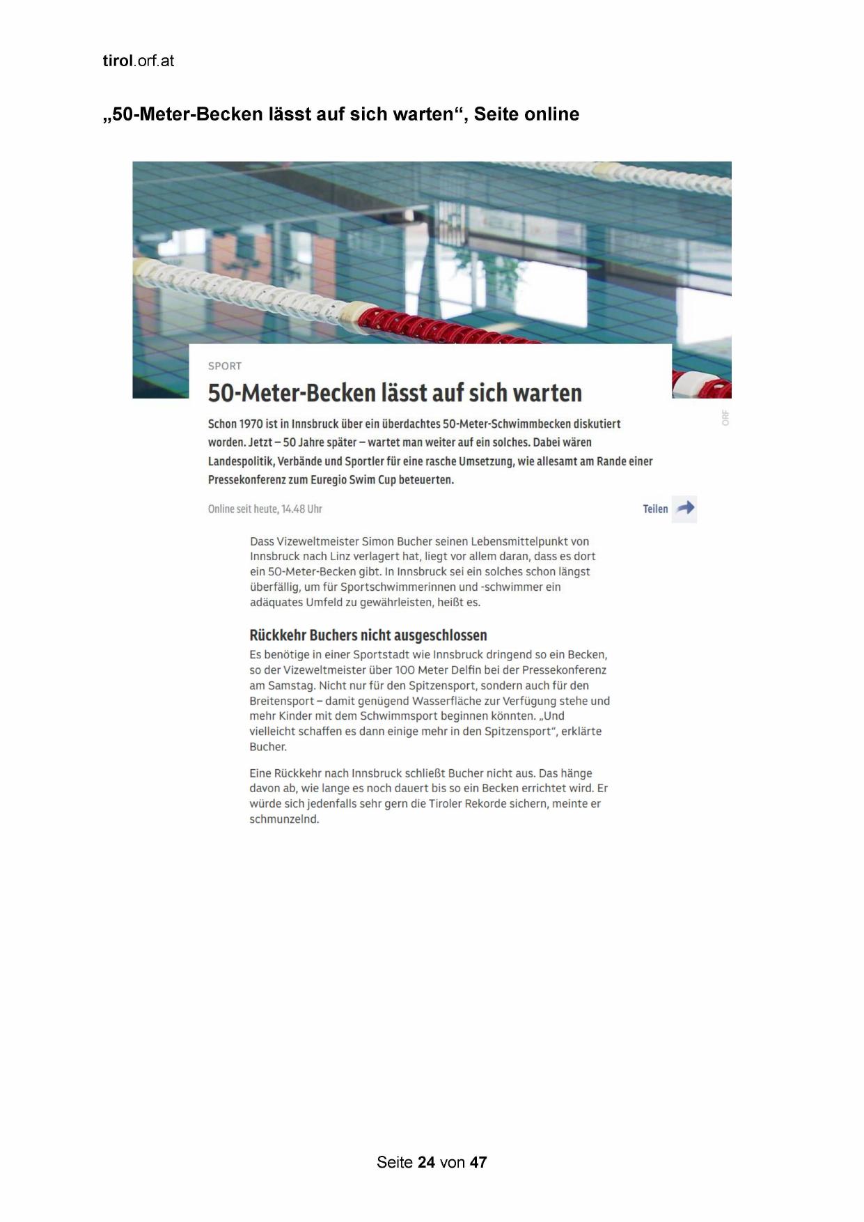 ein 50-Meter-Becken gibt. In Innsbruck sei ein solches schon längst