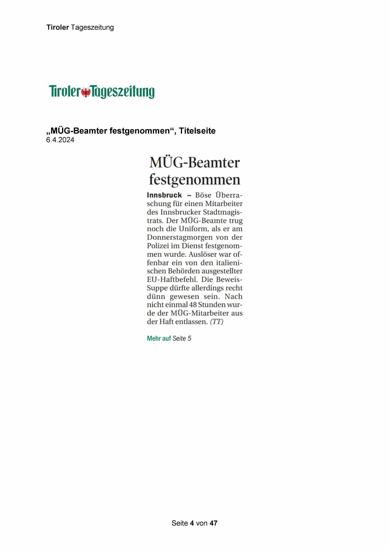 des Innsbrucker Stadtmagistrats. Der MÜG-Beamte trug