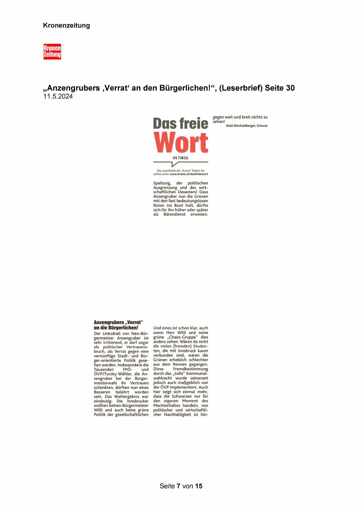 „Anzengrubers ‚Verrat‘ an den Bürgerlichen!“, (Leserbrief) Seite 30