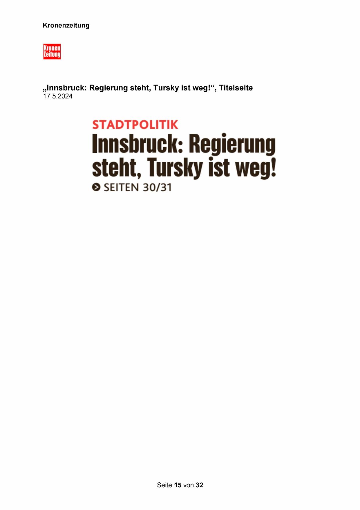 „Innsbruck: Regierung steht, Tursky ist weg!“, Titelseite