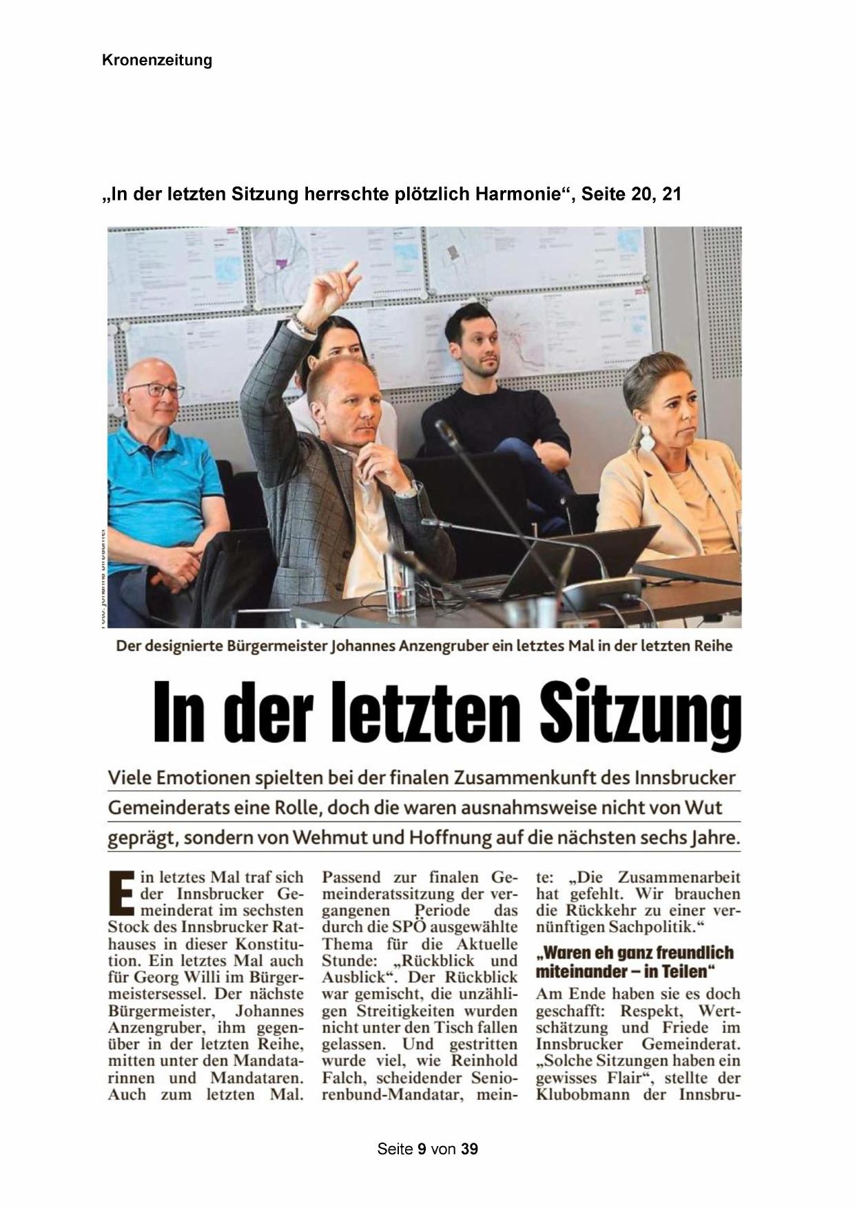 Passend zur finalen Gemeinderatssitzung der vergangenen Periode das