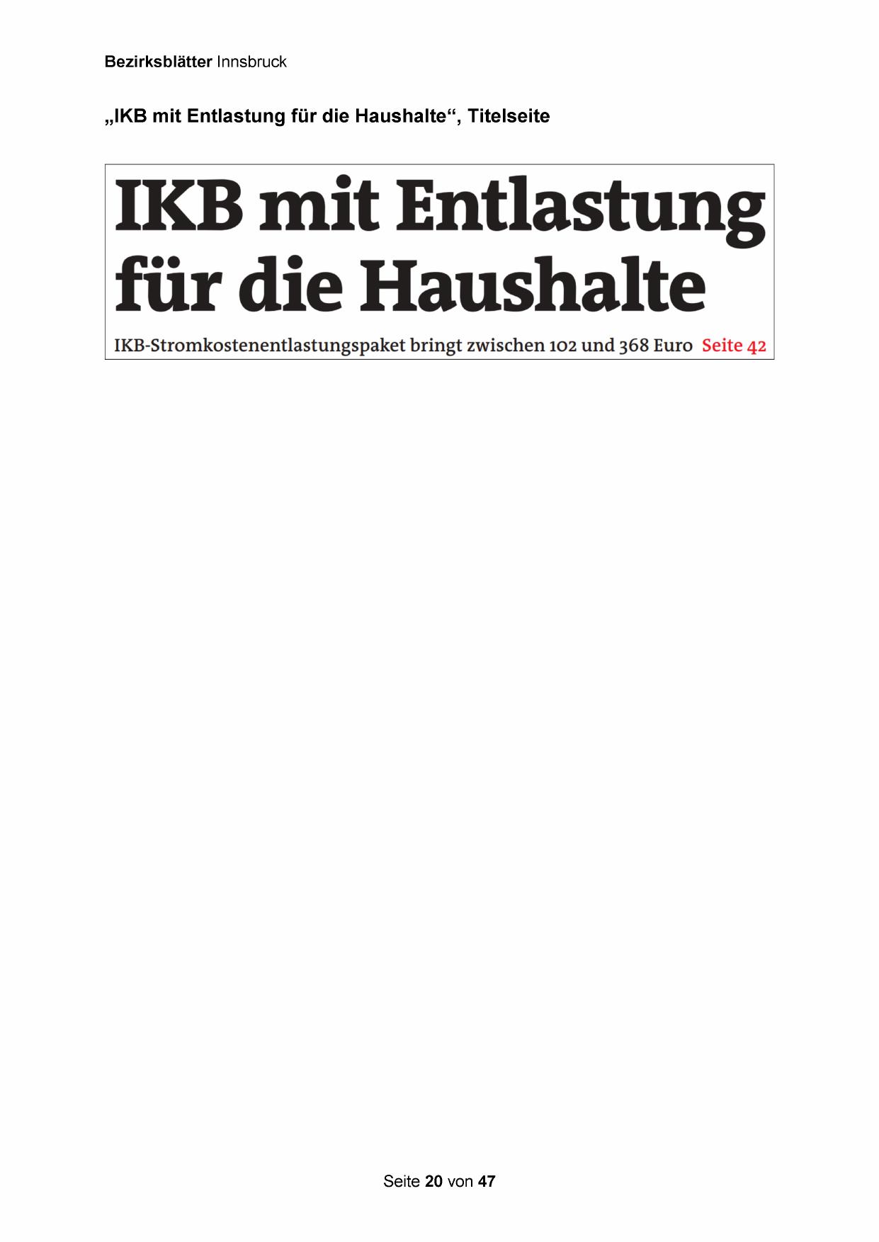 „IKB mit Entlastung für die Haushalte“, Titelseite