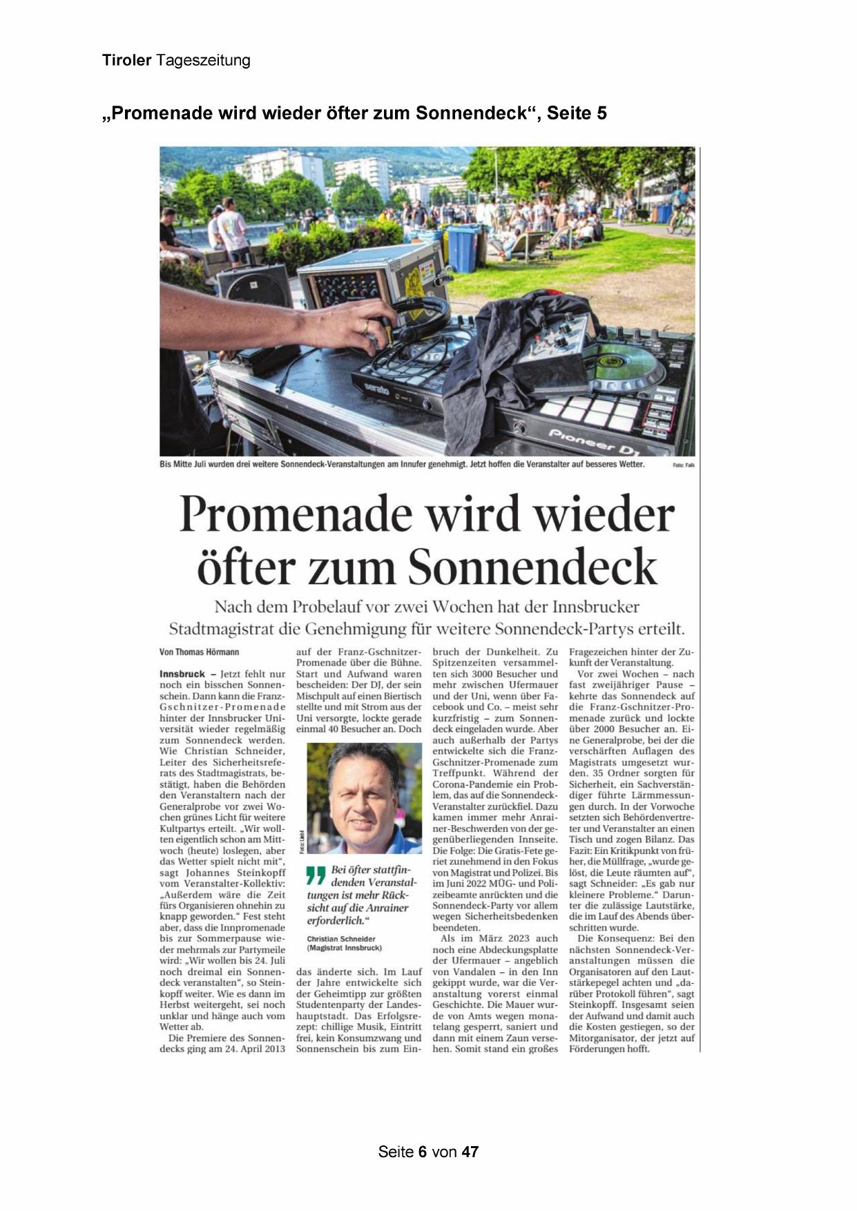 Stadtmagistrat die Genehmigung für weitere Sonnendeck-Partys erteilt.