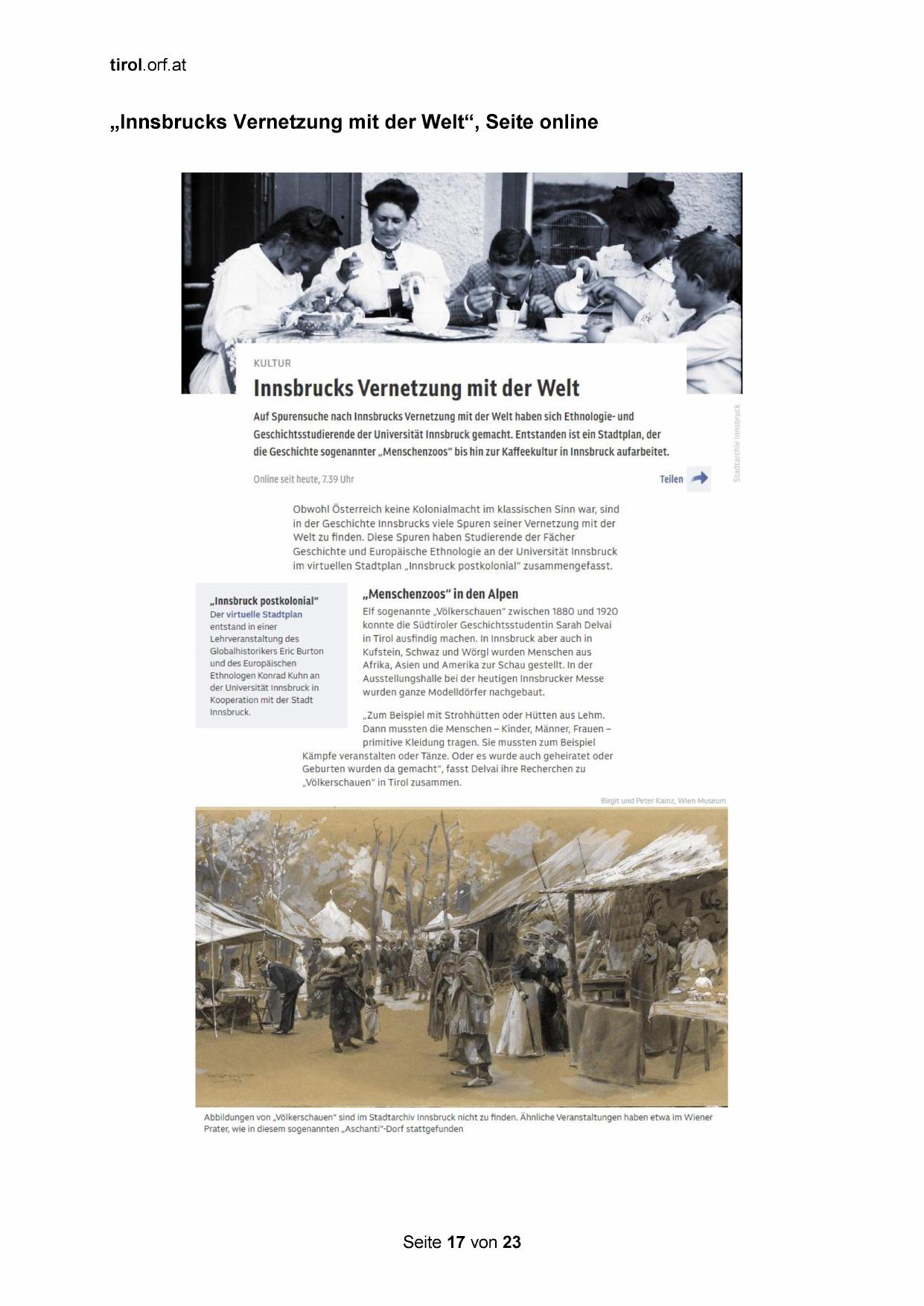 „Innsbrucks Vernetzung mit der Welt“, Seite online
