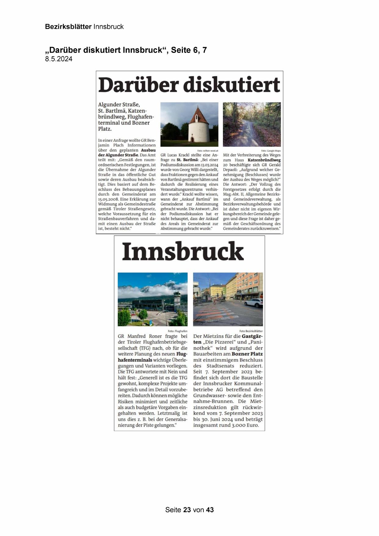 „Darüber diskutiert Innsbruck“, Seite 6, 7