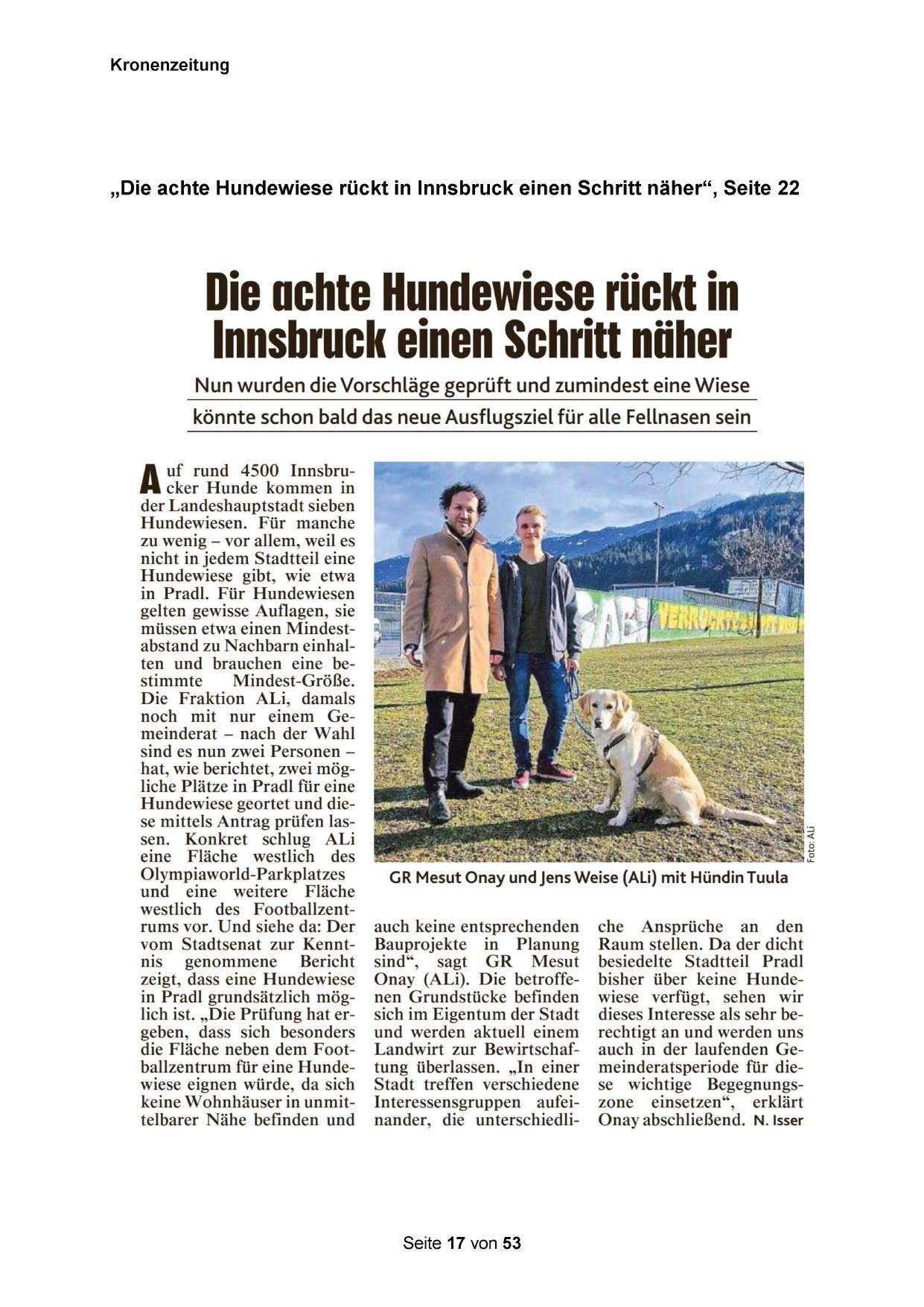 „Die achte Hundewiese rückt in Innsbruck einen Schritt näher“, Seite 22
