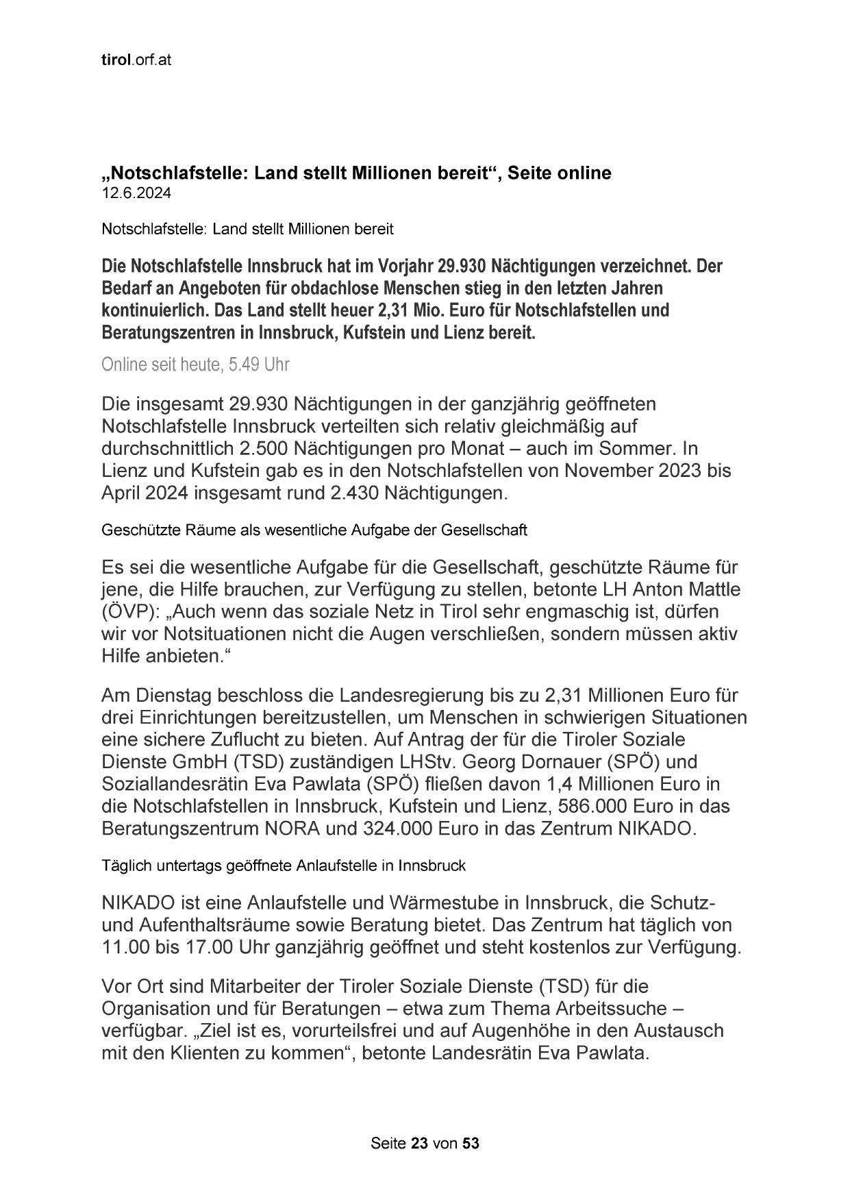 „Notschlafstelle: Land stellt Millionen bereit‘“, Seite online