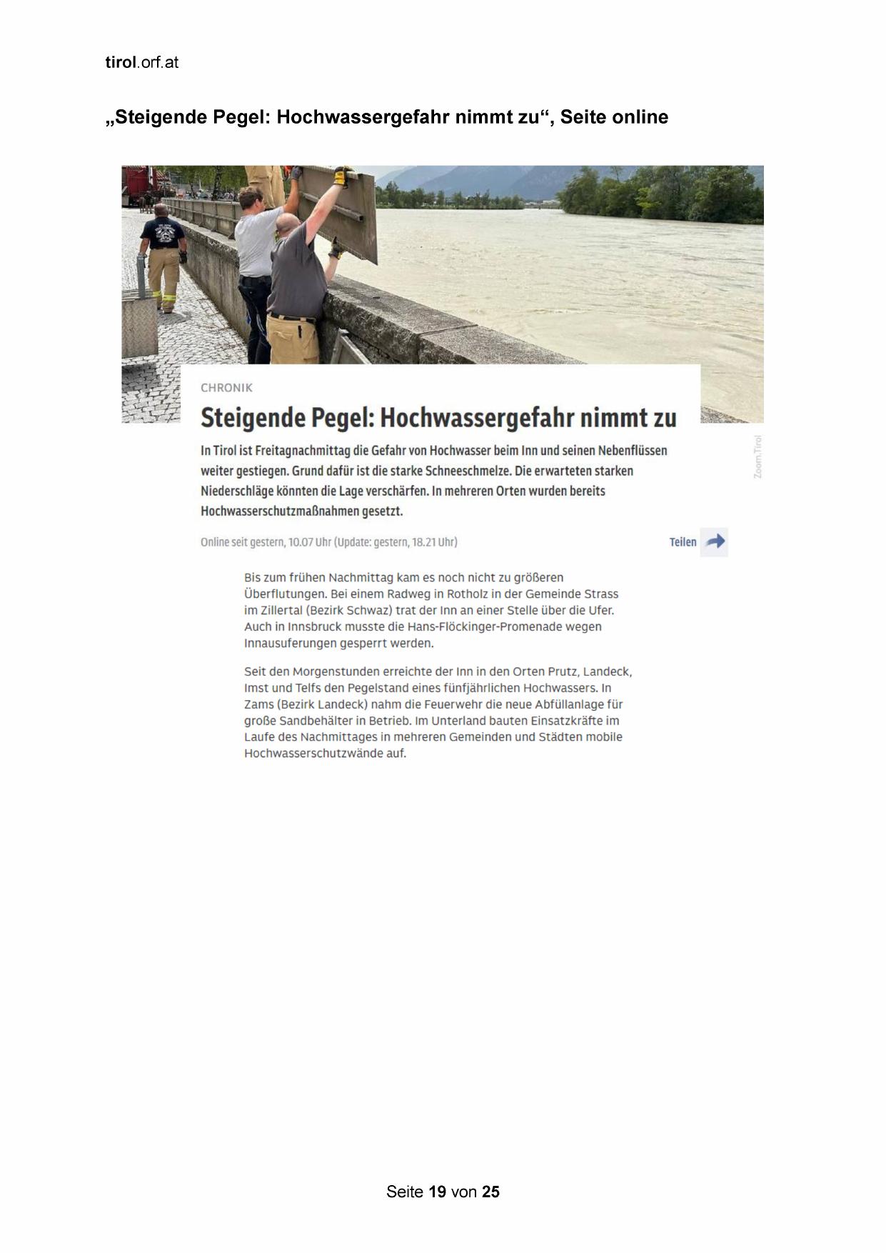 „Steigende Pegel: Hochwassergefahr nimmt zu“, Seite online