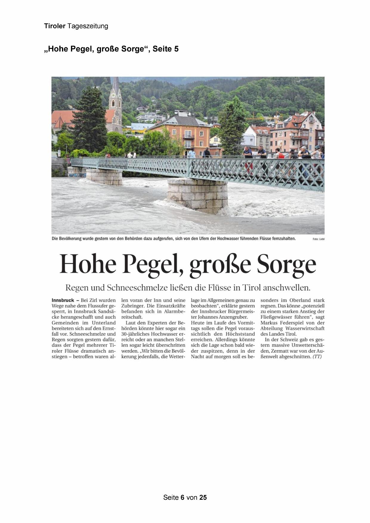 dass der Pegel mehrerer Tiroler Flüsse dramatisch anstiegen —- betroffen waren al-