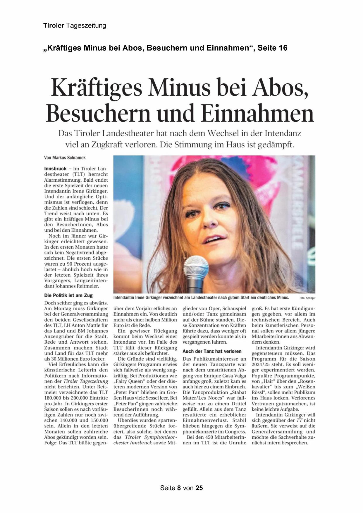 Innsbruck —- Im Tiroler Landestheater (TLT) herrscht