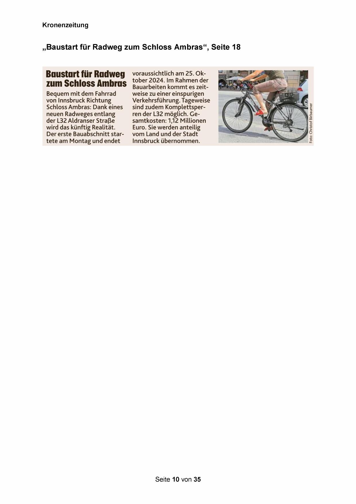 „Baustart für Radweg zum Schloss Ambras“, Seite 18