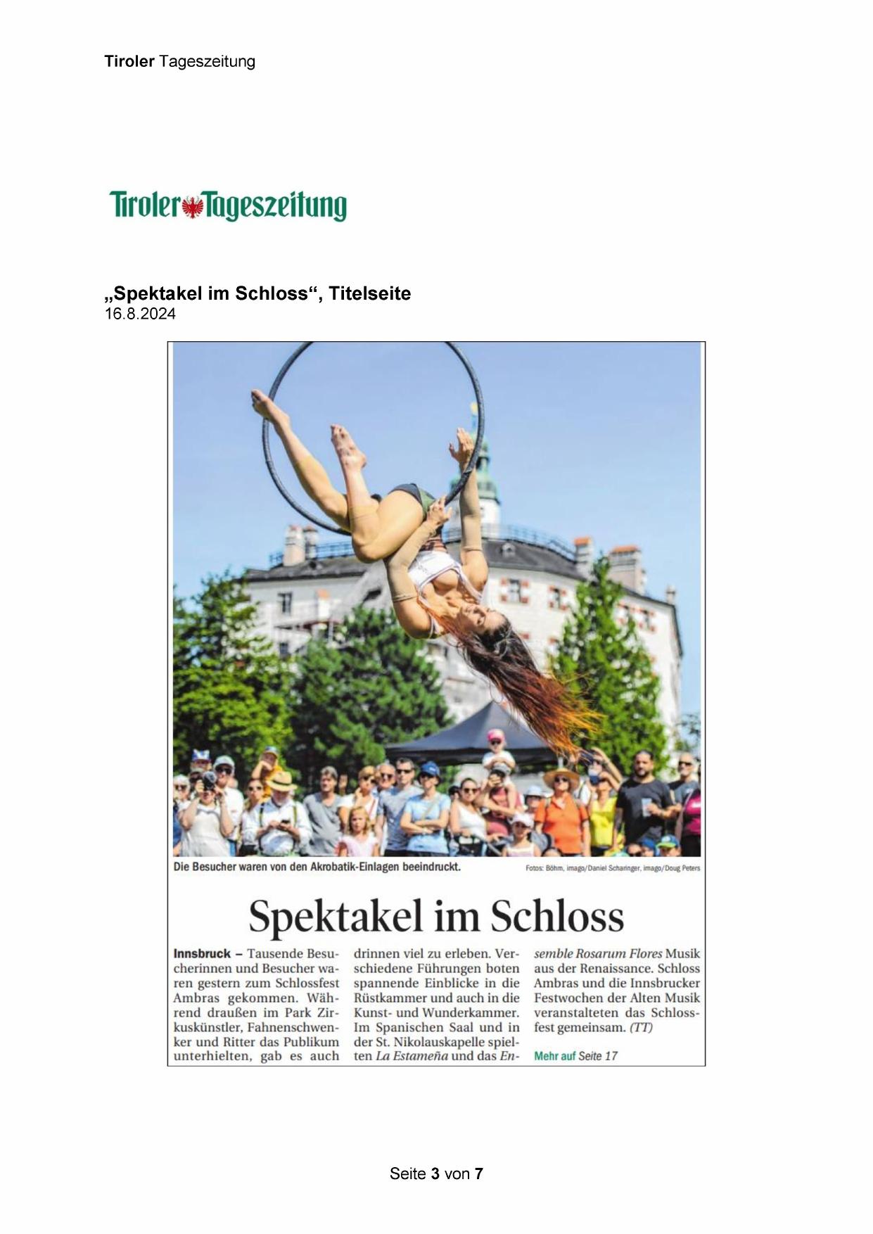 Ambras gekommen. Während draußen im Park Zirkuskünstler, Fahnenschwenker und Ritter das Publikum