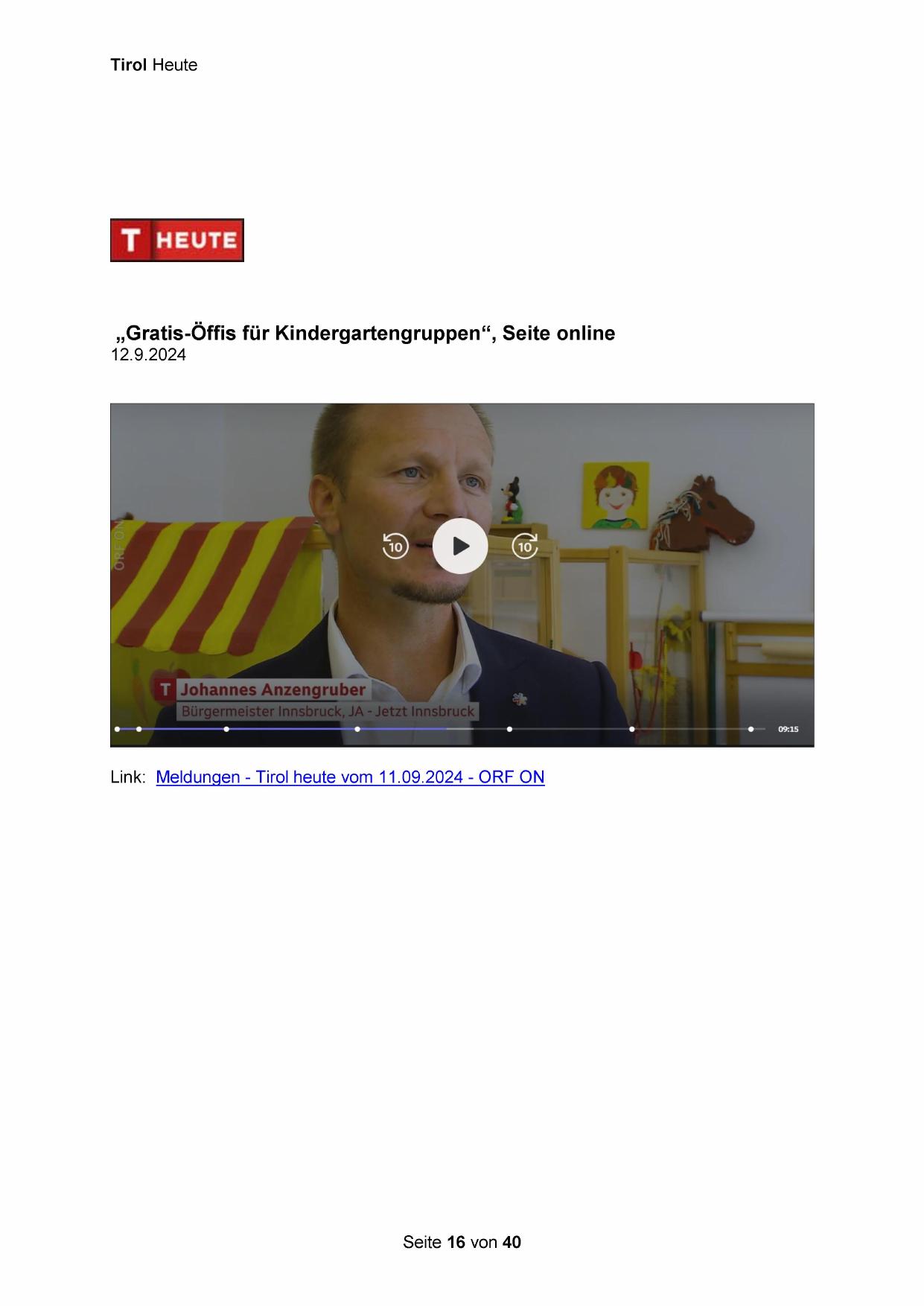 Link: Meldungen - Tirol heute vom 11.09.2024 - ORF ON