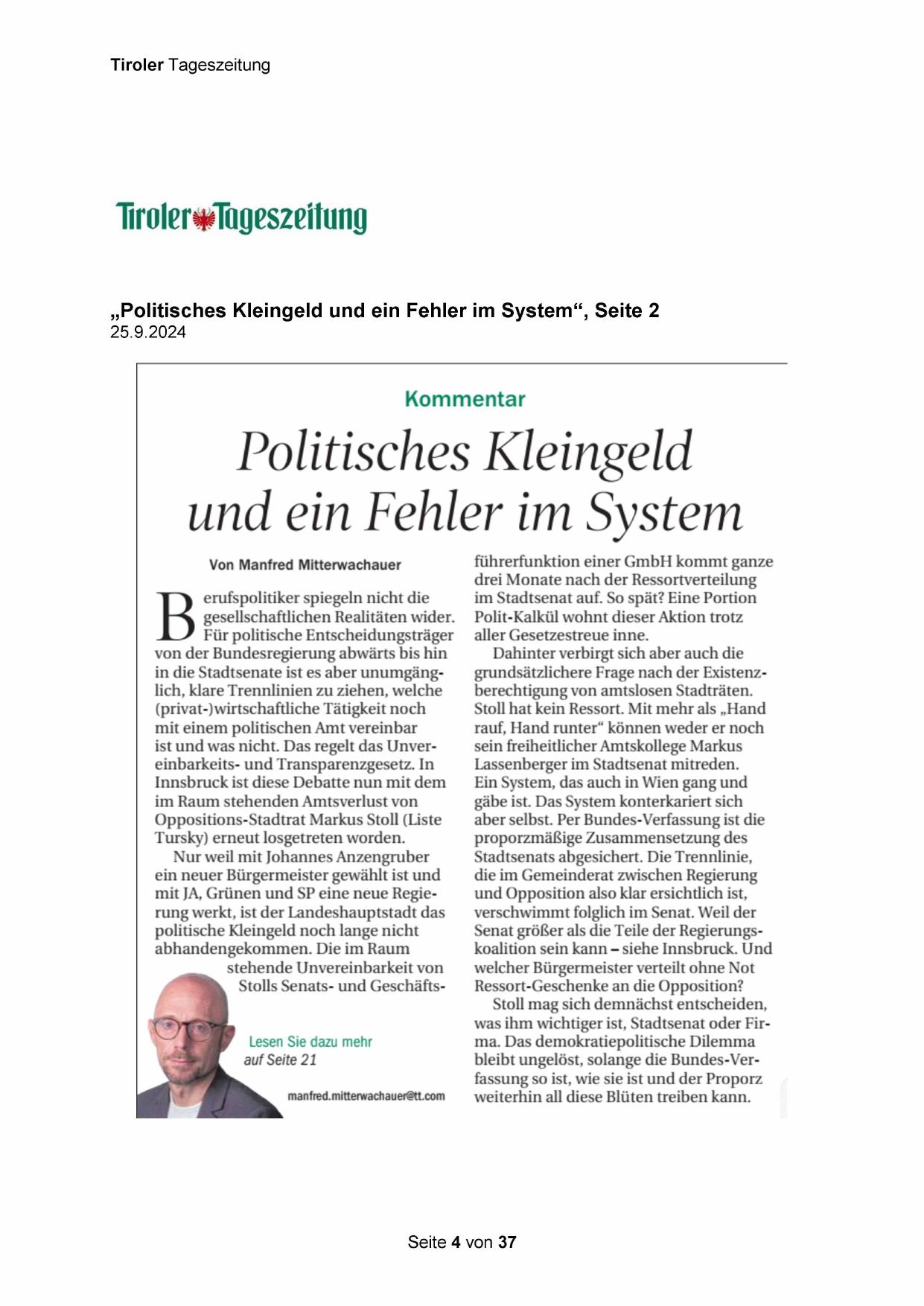 Senat größer als die Teile der Regierungskoalition sein kann - siehe Innsbruck. Und