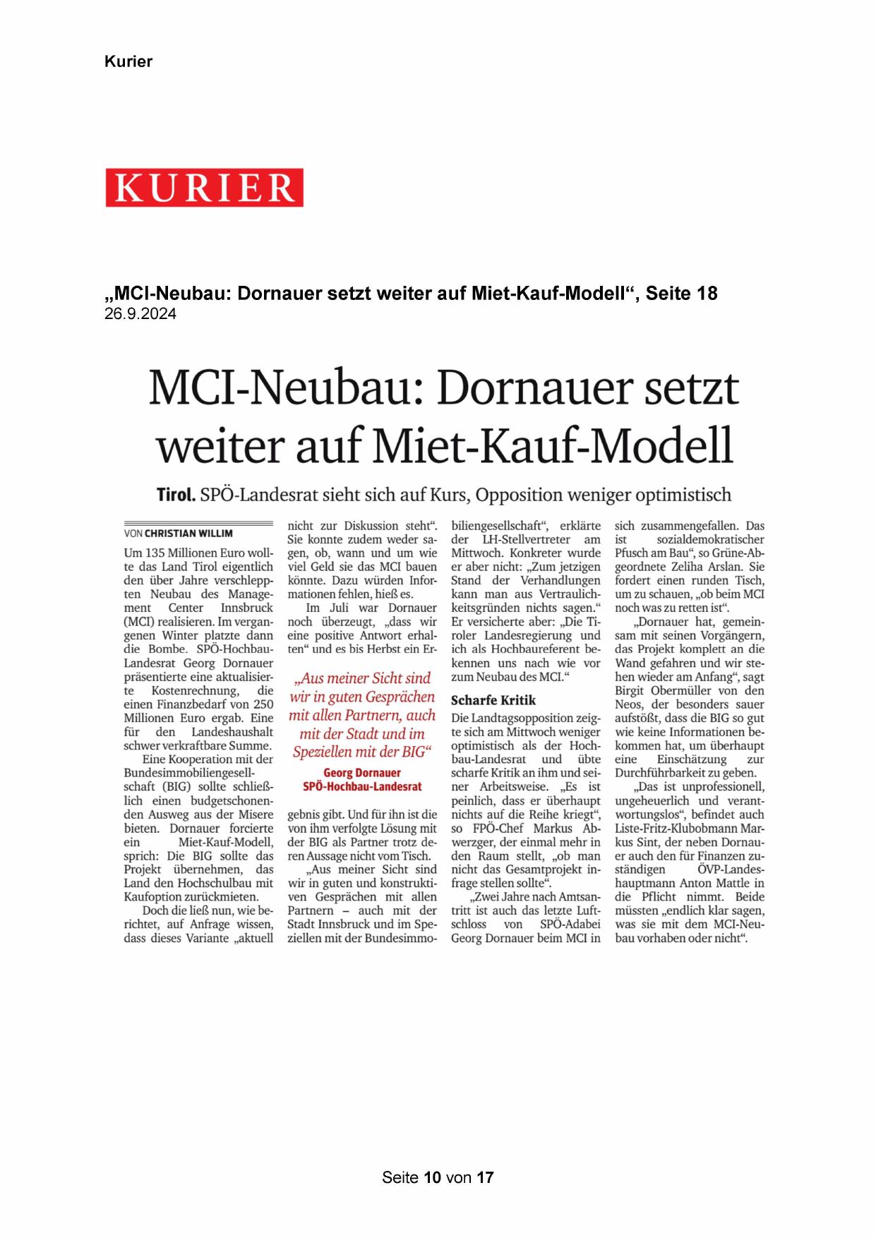 „MCI-Neubau: Dornauer setzt weiter auf Miet-Kauf-Modell‘“, Seite 18