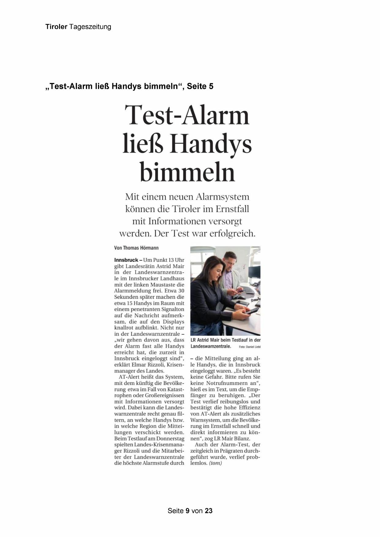 „Test-Alarm ließ Handys bimmeln“, Seite 5