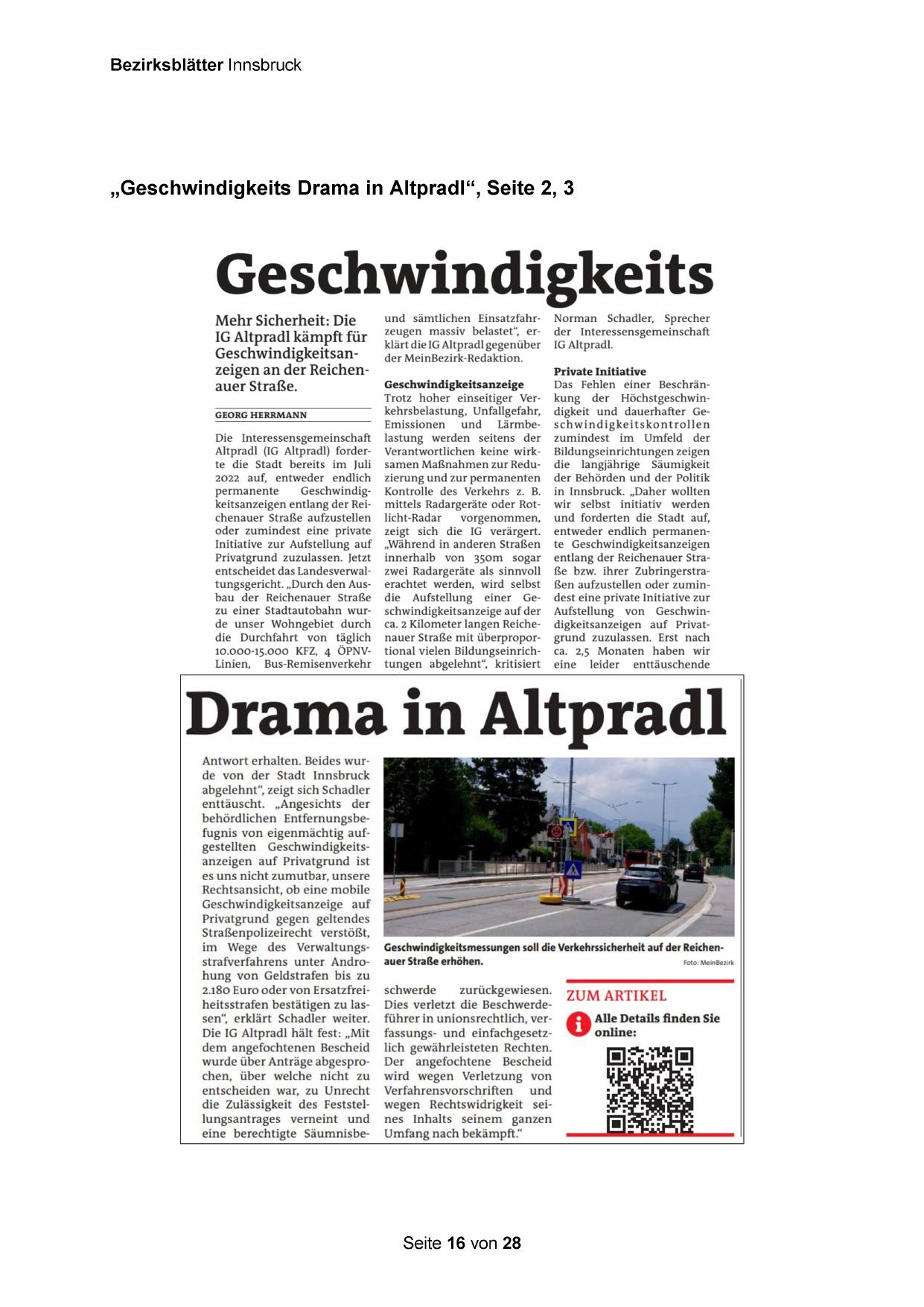 „Geschwindigkeits Drama in Altpradl“, Seite 2, 3