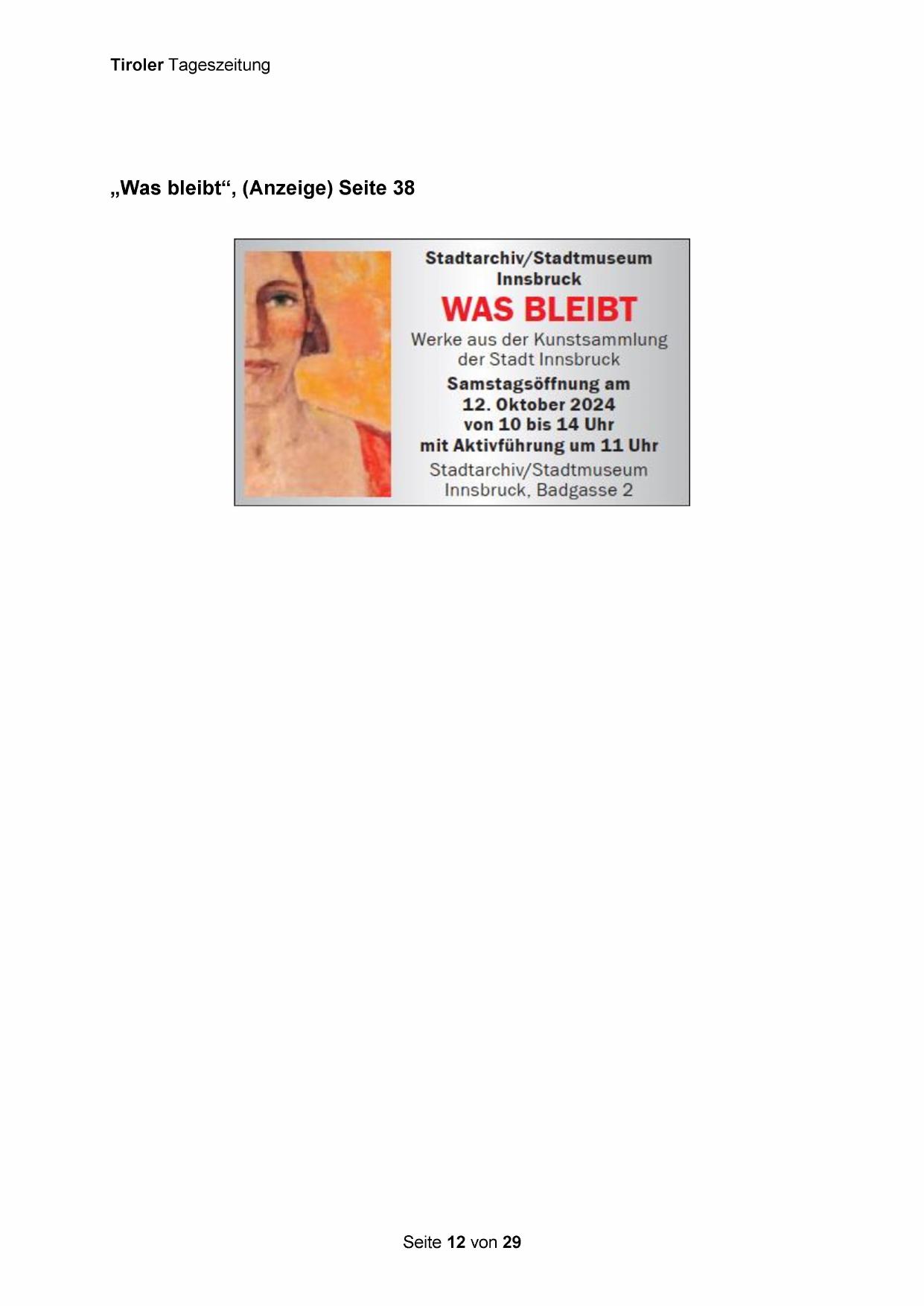 „Was bleibt‘“, (Anzeige) Seite 38
