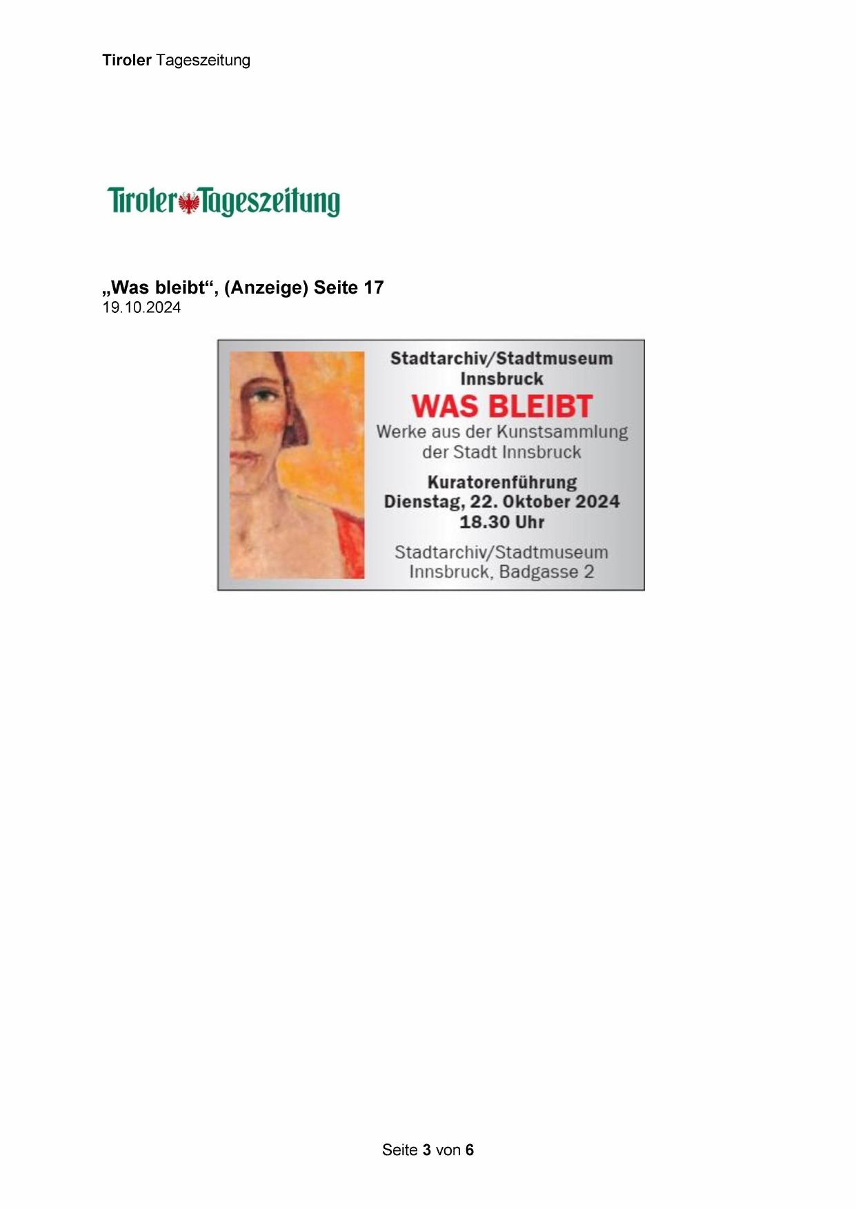 „Was bleibt‘“, (Anzeige) Seite 17