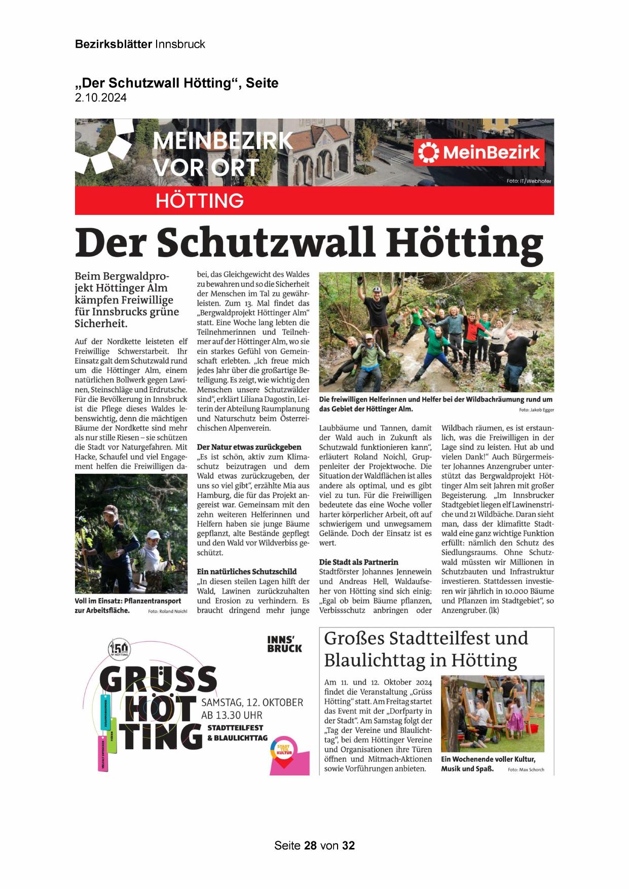 vielen Dank!“ Auch Bürgermeister Johannes Anzengruber unterstützt das Bergwaldprojekt Höttinger Alm seit Jahren mit großer