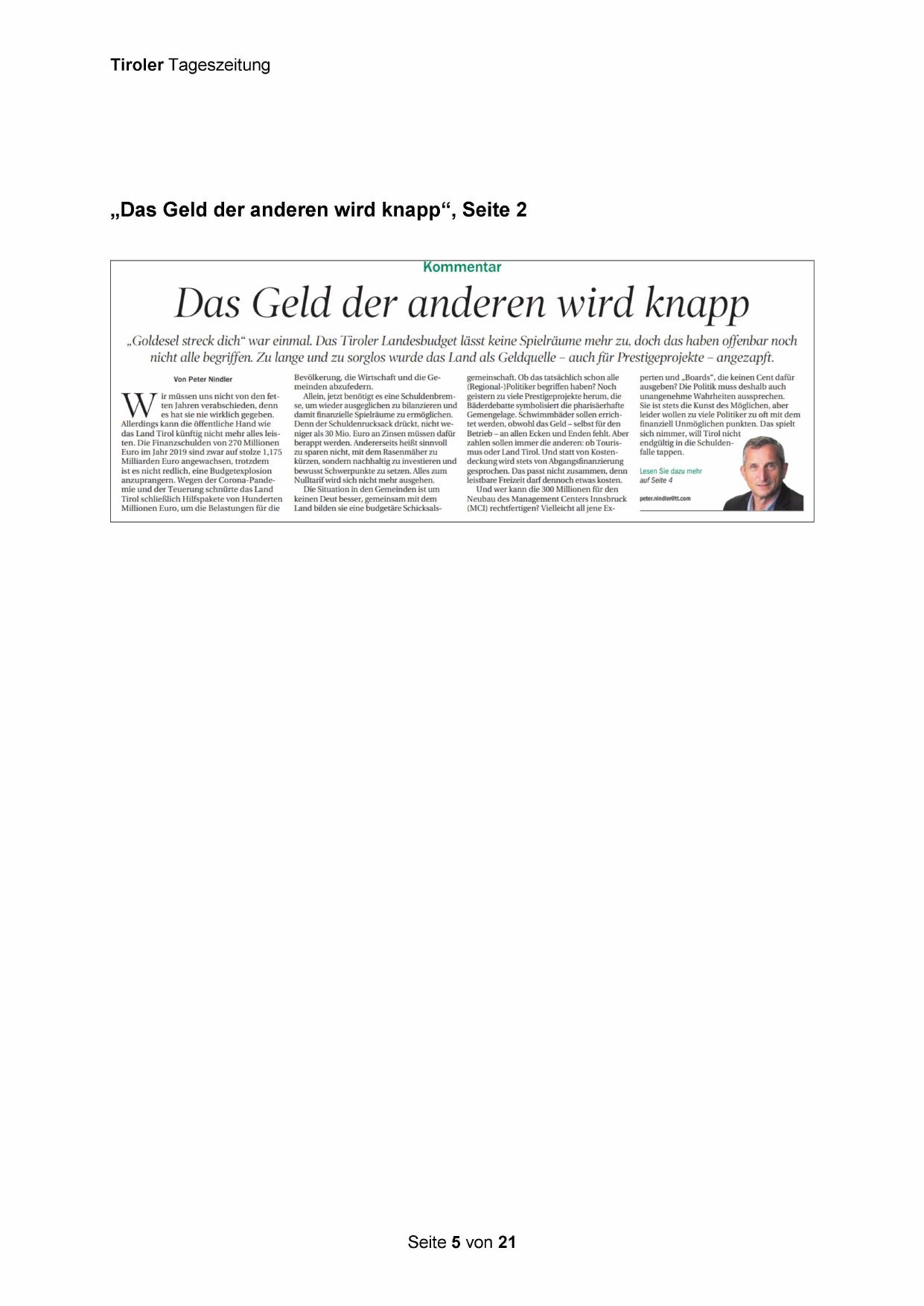 das Land Tirol künftig nicht mehr alles leisten. Die Finanzschulden von 270 Millionen