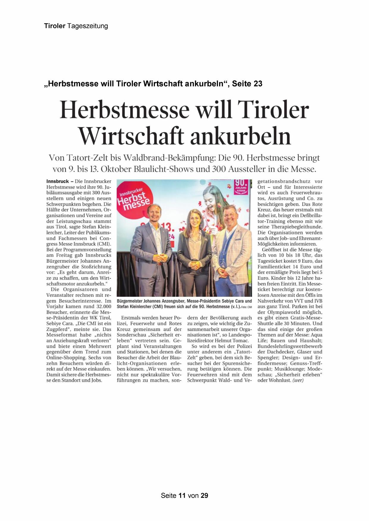 „Herbstmesse will Tiroler Wirtschaft ankurbeln“, Seite 23