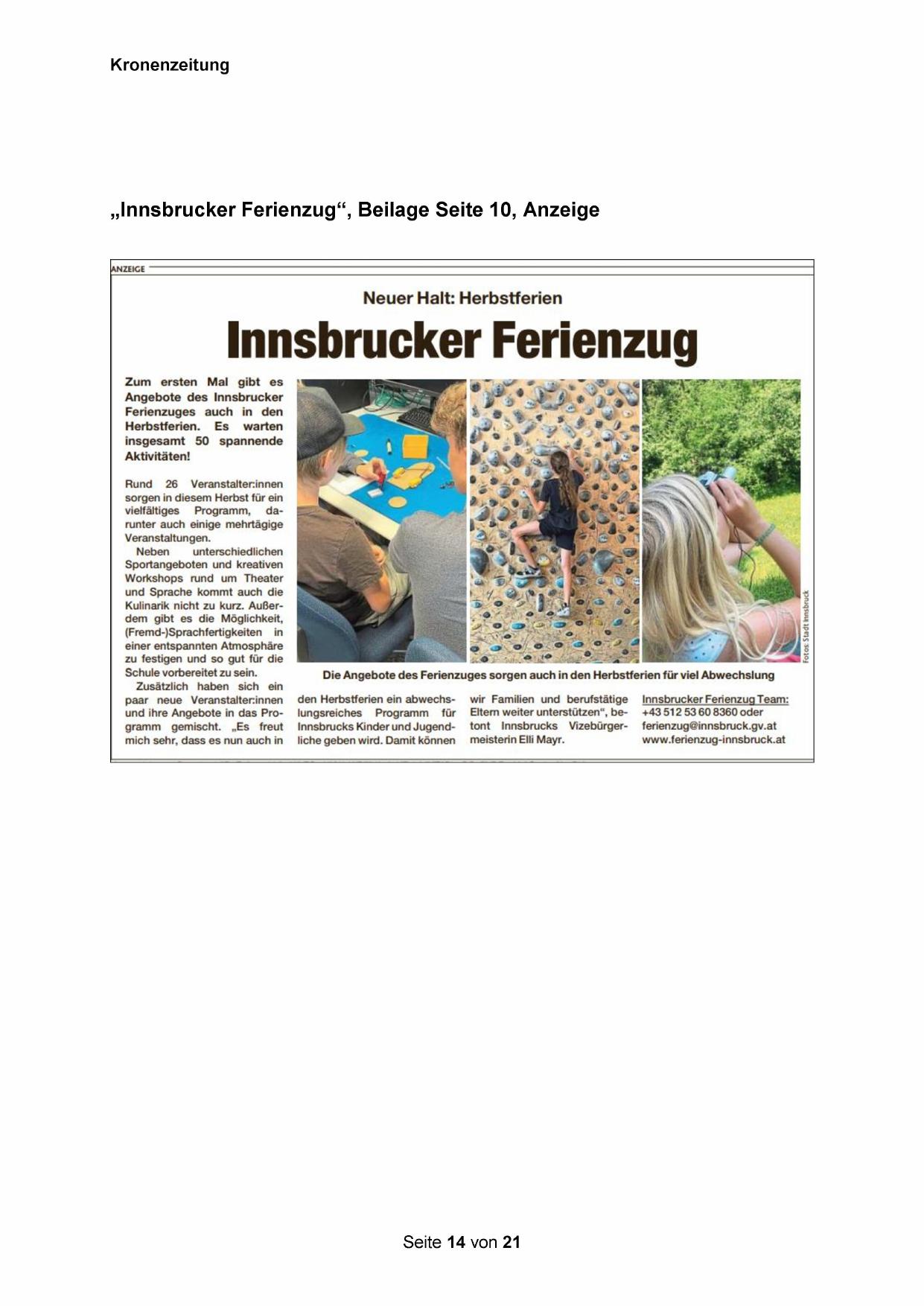 Innsbrucks Kinder und Jugendliche geben wird. Damit können