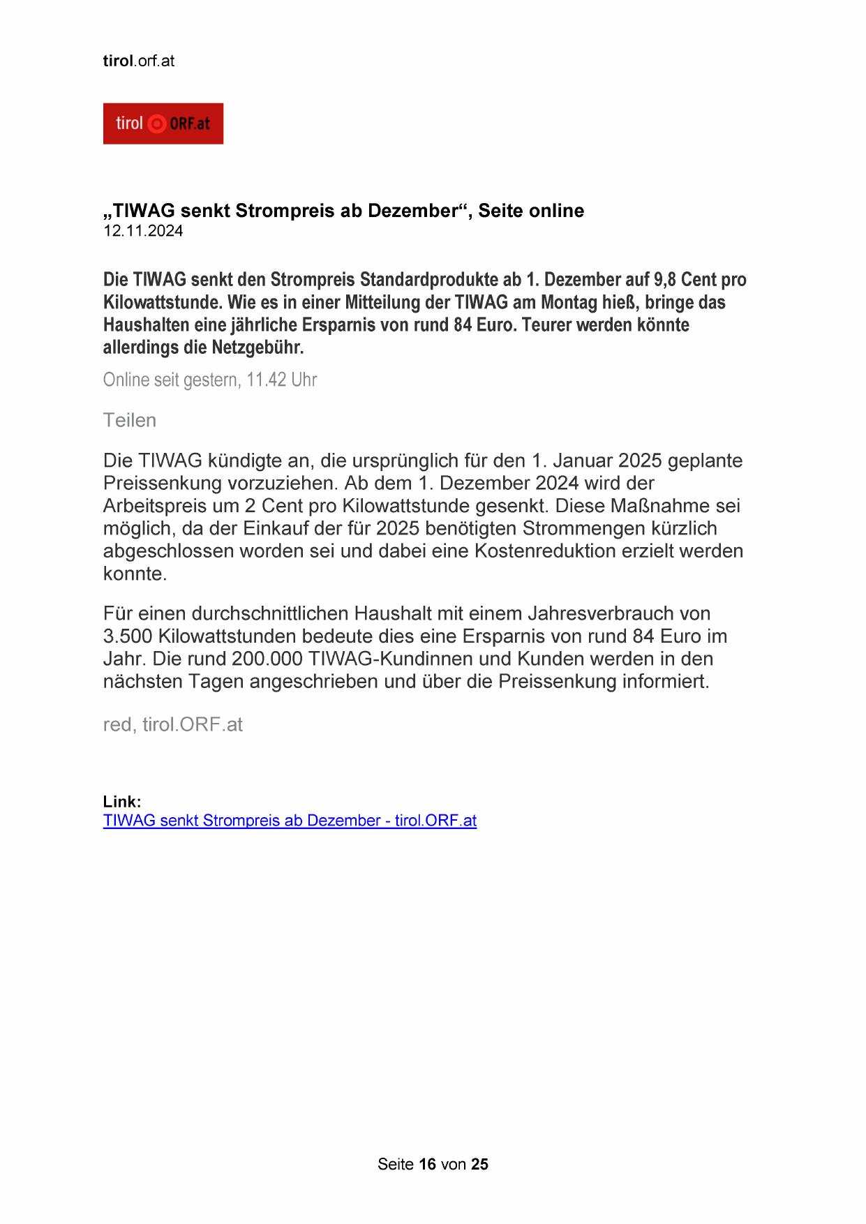 „TIWAG senkt Strompreis ab Dezember“, Seite online