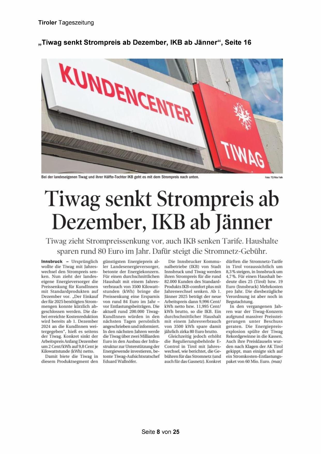 „Tiwag senkt Strompreis ab Dezember, IKB ab Jänner“, Seite 16