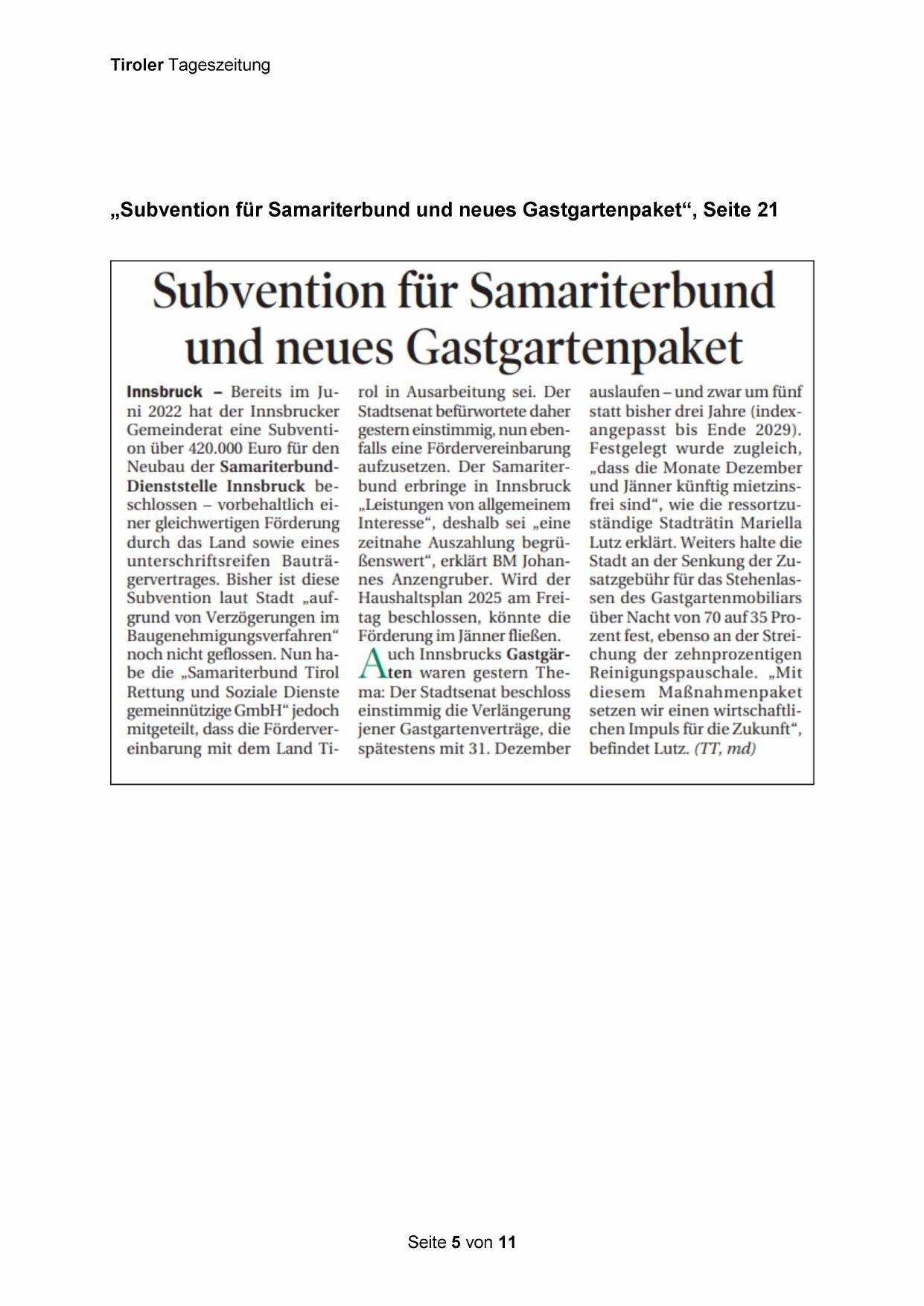 „Subvention für Samariterbund und neues Gastgartenpaket“, Seite 21