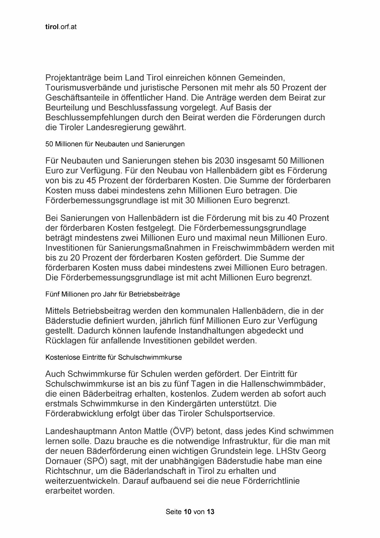 Landeshauptmann Anton Mattle (ÖVP) betont, dass jedes Kind schwimmen