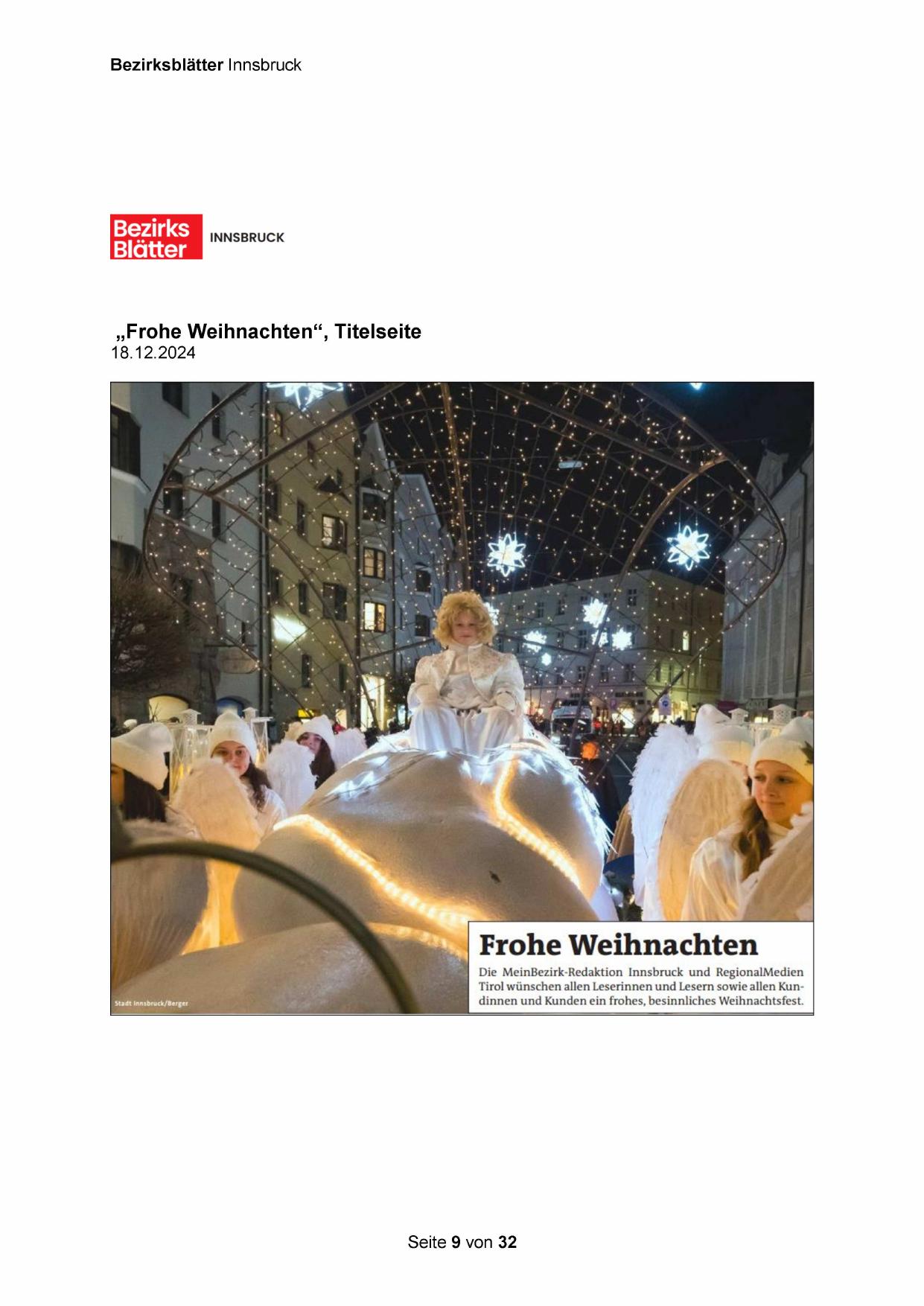 Tirol wünschen allen Leserinnen und Lesern sowie allen Kundinnen und Kunden ein frohes, besinnliches Weihnachtsfest.